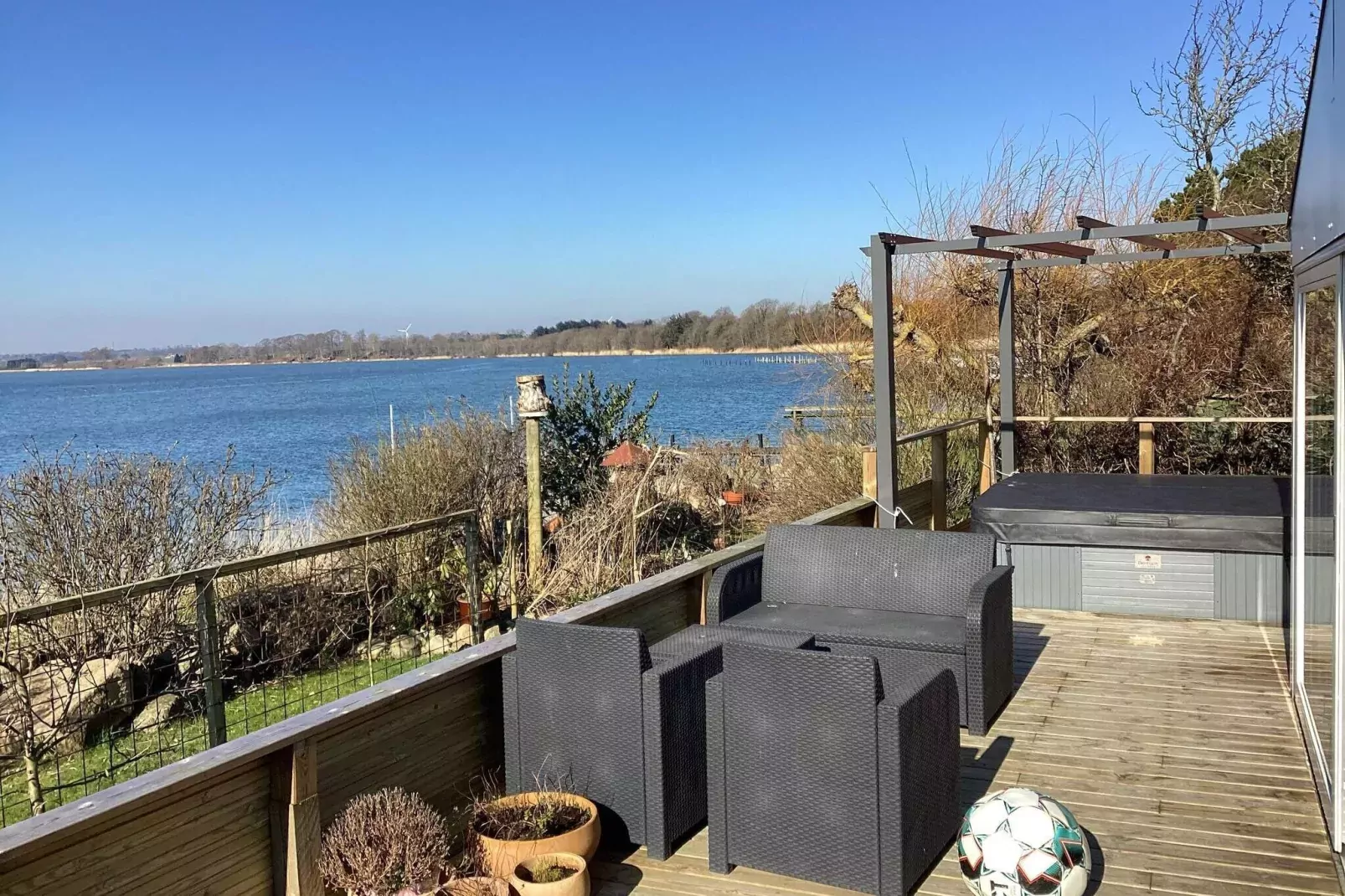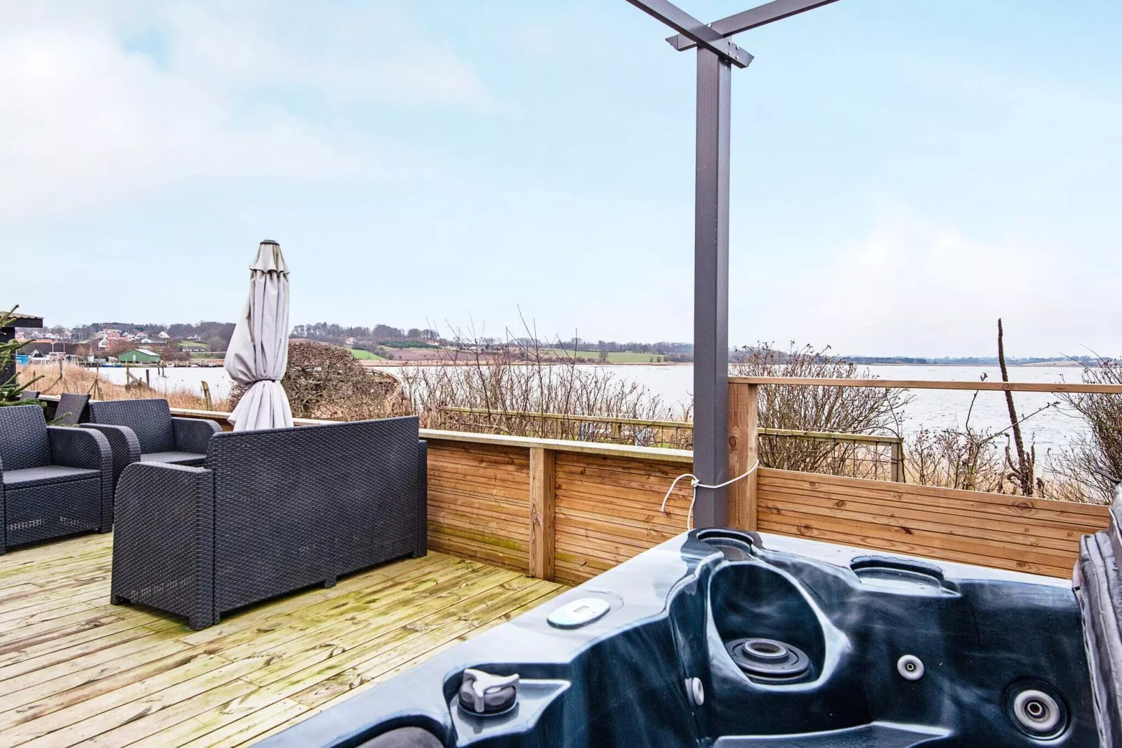 Ferienhaus mit herrlichem Blick aufs Wasser und einer wunderschönen Terrasse sowie einem Außenwhirlpool für erholsame Stunden. Hier können Sie sich entspannt zurücklehnen und die herrliche Küstenlandschaft aus erster Reihe genießen! Das Ferienhaus liegt nur ca. 10 m vom wunderschönen See- und Naturgebiet „Noret“ in Hejlsminde entfernt. Der Blick auf den See mit seiner Vogelwelt, darunter Seeadler, und den Sonnenuntergang ist atemberaubend. Auf der Terrasse können Sie im Whirlpool sitzen und die Sterne beobachten! Das Ferienhaus wird kontinuierlich gepflegt und erhielt zuletzt 2021 einen neuen Wintergarten, der seitdem als Wohnzimmer genutzt wird. Von hier aus gelangt man durch eine Schiebetür auf die schöne Terrasse. Der Wintergarten bringt viel Licht ins Haus und bietet gleichzeitig einen fantastischen Blick aufs Wasser. Das Haus verfügt über zwei Schlafzimmer: eines mit einem Doppelbett, das andere mit einem Doppelbett und einem Etagenbett. Die Terrasse ist mit Sonnenliegen, Gartenmöbeln und Lounge-Sets ausgestattet und lädt zum Entspannen ein. Da der Strand von Hejlsminde nur etwa 75 Meter entfernt ist, ist ein kurzes Bad im Wasser kein Problem. Der Strand zeichnet sich durch seinen hellen Sand und das kinderfreundliche Ufer aus. Der kleine Yachthafen mit seinen vielen Segelbooten und mehreren Fischerbooten ist nur etwa 200 Meter entfernt. Keine Vermietung an Jugendgruppen!A refundable deposit might be charged closer to your check-in date. The security deposit ensures a smooth stay and covers any additional services or consumption charges.This deposit covers utilities consumed during your stay and any additional services that may be taken.The final amount will be adjusted based on actual meter readings, actual usage of extra services, and any remaining balance will be refunded within 21 days after checkout.This deposit simply acts as a prepayment for charges that you would anyways pay for, ensuring a seamless stay and check-out experience.