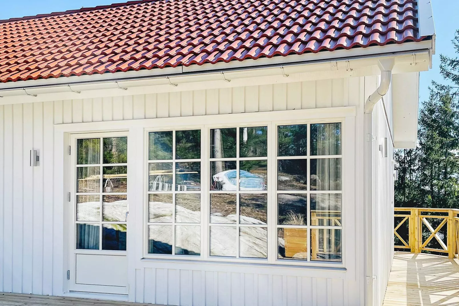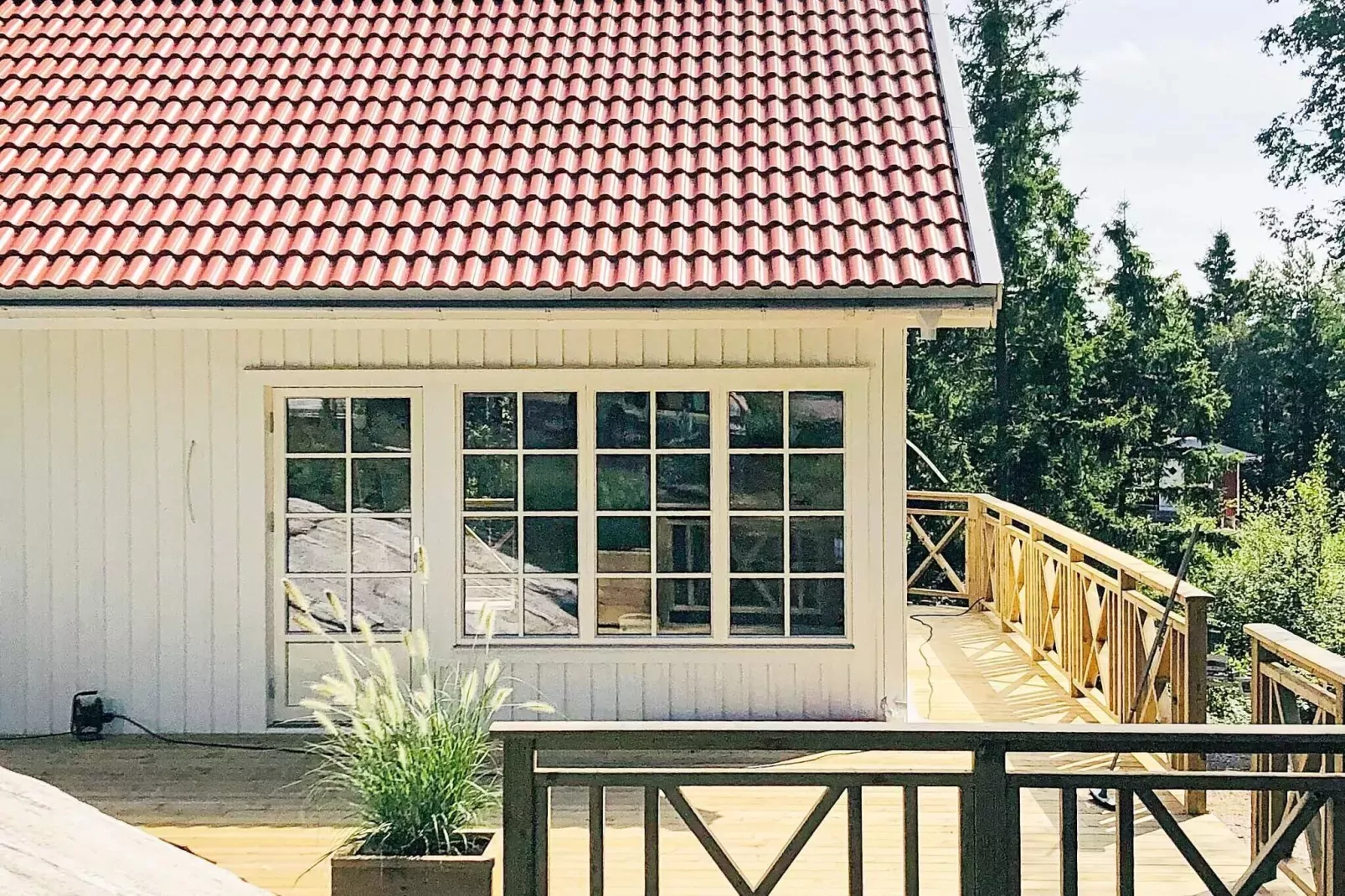 Willkommen in einem unglaublich schönen, 2023 erbauten Ferienhaus mit sehr schöner Inneneinrichtung. Sie wohnen hier zudem nur 500 m vom Meer entfernt! Das Haus liegt erhöht, in einer ruhigen Umgebung mit Bäumen und Wald sowie weiteren Ferienhäusern in der Umgebung. Der Altan geht einmal um das Haus herum, um jederzeit einen sonnigen Sitzplatz im Freien bieten zu können. Die schöne kleine Sitzecke vor dem Eingang lädt zu einer Tasse Kaffee am Morgen ein. Innen erwartet Sie ein helles, modernes Wohnambiente. Vom Eingang aus gesehen liegt auf der linken Seite die Küche mit viel Licht und offener Decke bis zum First. Alles hier ist sehr geschmackvoll und angenehm. In der Küche fehlt es an nichts und sie ist in das Wohnzimmer integriert. Von hier aus erreichen Sie auch eine Terrassentür zur Rückseite des Hauses, wo ein Grill und Gartenmöbel Sie erwarten. Ein Esstisch für 4 Personen steht zusammen mit einem Sofa und einem Fernseher zur Verfügung. Weiter hinten befindet sich das ebenfalls helle Badezimmer des Hauses mit Duschkabine, WC und Waschbecken. Daneben liegt das einzige Schlafzimmer des Hauses mit einem Doppelbett von 160 cm Breite. Auch hier ist alles sehr ansprechend gestaltet. Die Treppe nach oben ist maritim, mit einem Paddel/Ruder als Geländer gestaltet. Oben auf dem Schlafboden mit 180 Deckenhöhe stehen zwei bequeme Betten mit einer Breite von 120 cm zur Verfügung, perfekt für Familien mit älteren Kindern oder zwei Paaren. Genießen Sie sowohl die ländliche Umgebung als auch die Nähe zum Meer! Sie wohnen sehr idyllisch, in landschaftlich reizvoller Umgebung. Rechts unterhalb des Hügels finden Sie das Badeufer mit Stegen, Felsen, Gras und Sand. Sie wohnen unweit aller schönen Erdbeerorte der Gegend sowie nahe Ausflugszielen wie Grundsund und Lysekil an der Schärenküste. Bokenäs selbst bietet Flohmärkte (loppis), Sommercafés und viele schöne Orte.