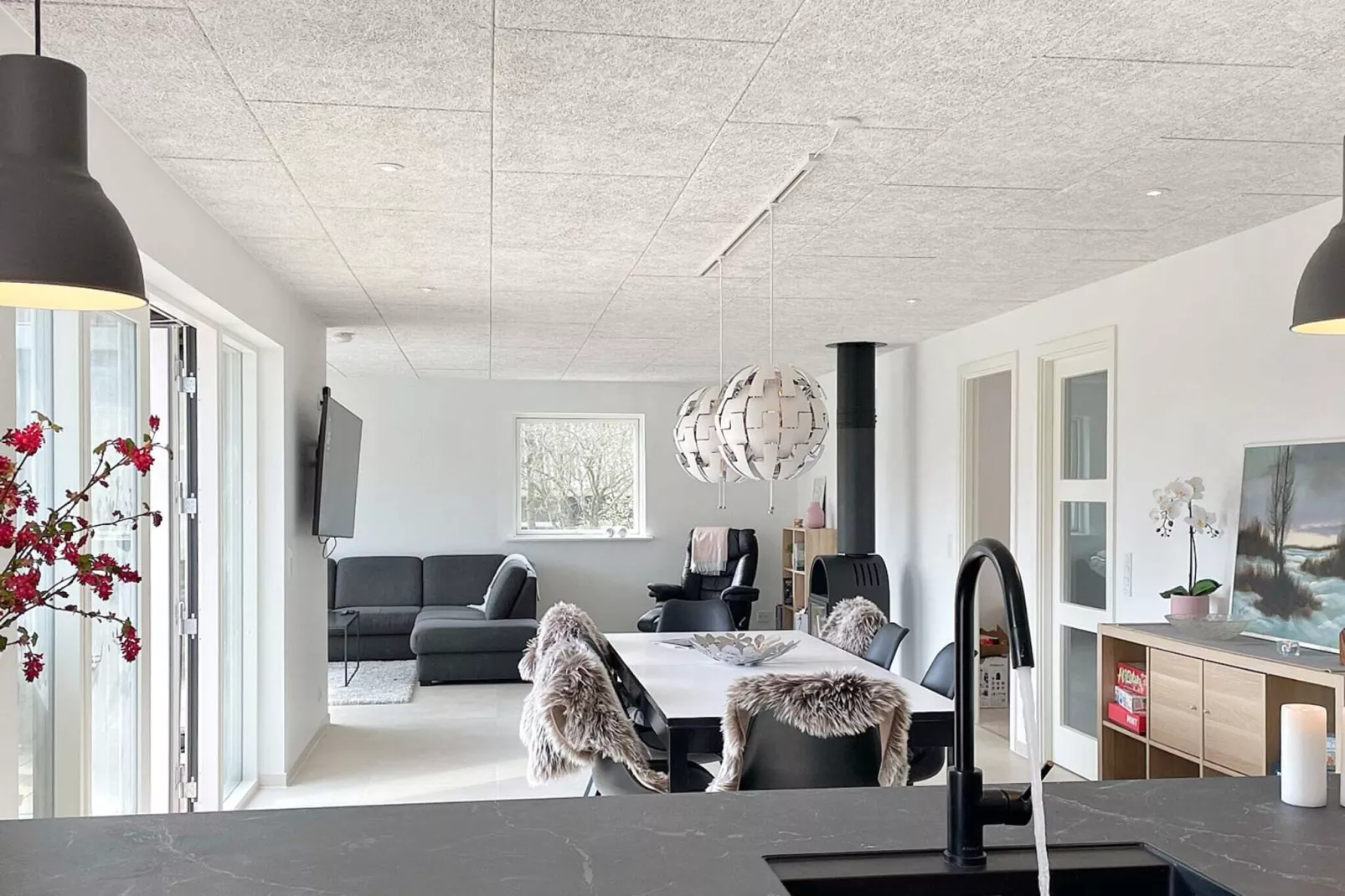 Modernes Ferienhaus, 2023 erbaut im malerischen Ferienhausgebiet von Vemb am Nissum Fjord und ganz in der Nähe einiger der besten Angelseen Dänemarks bei Nees. Das Ferienhaus bietet drei Schlafzimmer mit insgesamt 8 Schlafplätzen; eines mit höhenverstellbarem Doppelbett, das zweite mit zwei Einzelbetten, die man auch als Doppelbett zusammenstellen kann, das dritte mit zwei Einzelbetten sowie Etagenbett mit zwei oberen Kojen. Das Ferienhaus ist nur ca. 500 m vom Nissum Fjord entfernt, wo es möglich ist, ein Boot zu Wasser zu lassen. Dort findet man auch sehr kinderfreundliche Bademöglichkeiten vor, da der Fjord sehr flach ist. Am Fjordufer gibt es eine Feuerstelle für ein Lagerfeuer, Tische und Bänke sowie Shelter für eine Übernachtung im Freien. Schöne Fauna in der Gegend, wo Sie mit etwas Glück Wild sehen können. Nur ca. 3 km entfernt gibt es Mini- und Fußballgolf sowie einige der besten Put & Take-Seen Dänemarks inkl. einem sogenannten Kindersee bei Loch Nees Football Golf.A refundable deposit might be charged closer to your check-in date. The security deposit ensures a smooth stay and covers any additional services or consumption charges.This deposit covers utilities consumed during your stay and any additional services that may be taken.The final amount will be adjusted based on actual meter readings, actual usage of extra services, and any remaining balance will be refunded within 21 days after checkout.This deposit simply acts as a prepayment for charges that you would anyways pay for, ensuring a seamless stay and check-out experience.