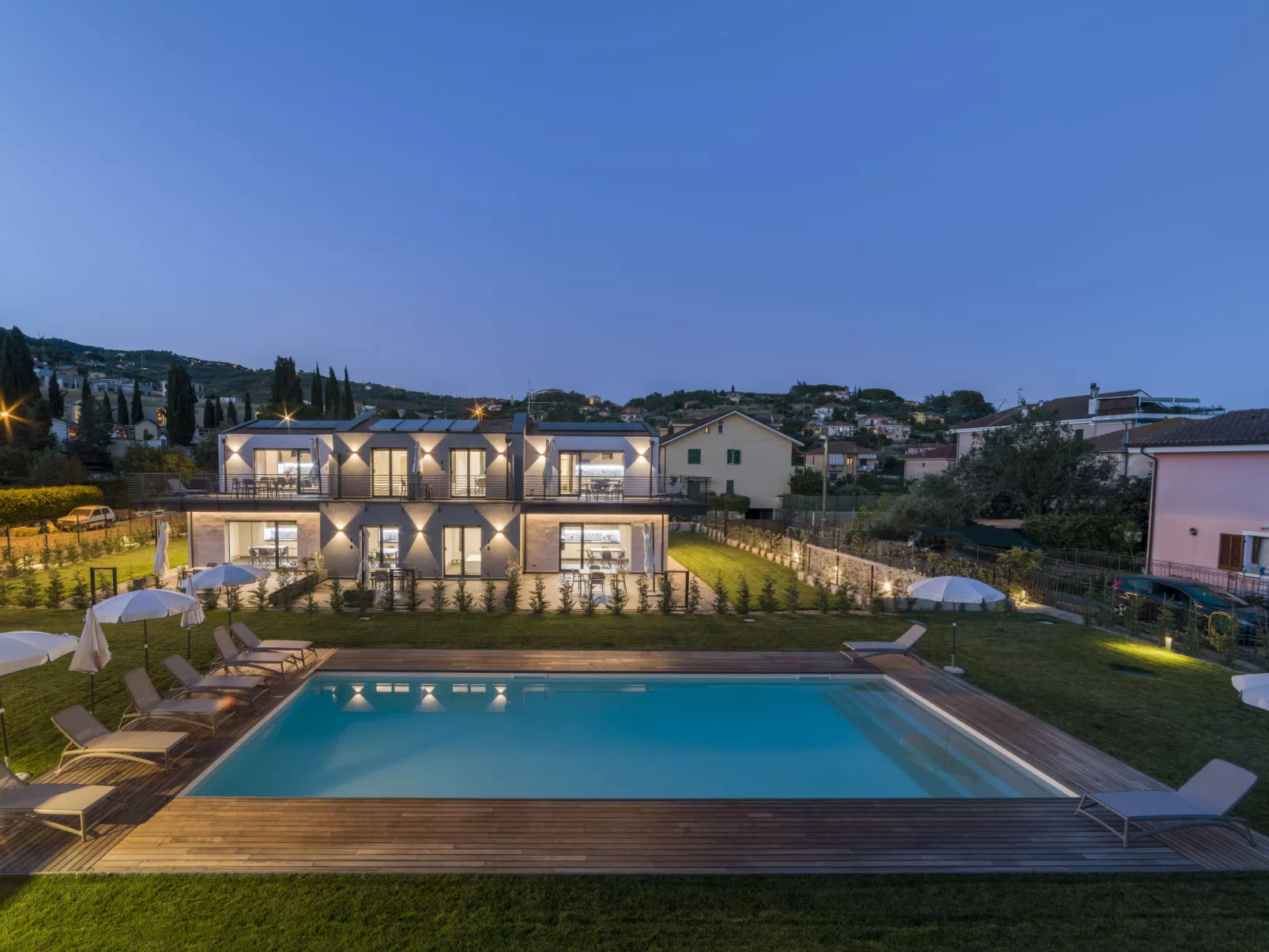 Moderne, comfortabele residentie "Al Bistrot dei Vinai", van 2 verdiepingen, bouwjaar 2022. 6 appartementen in de woning. In de wijk Caramagna, 1.5 km van het centrum van Imperia, 25 km van het centrum van San Remo, 90 km van het centrum van Nizza, zonnige ligging in een woonwijk, 1.5 km van zee. Voor medegebruik: groot, verzorgde tuin 1.000 m2 (omheind) met gazon en bloemen, ligweide, openluchtzwembad (5 x 15 m, 140 cm diepte, seizoensgebonden beschikbaarheid: 12.Apr. - 30.Sep.). Buitendouche, tuinmeubelen, barbecue, kinderspeelplaats (glijbaan), onderhoud zwembad door de eigenaar/tuinman. In het huis: lift, bergruimte voor fietsen, air-conditioning, wasmachine, droger (voor medegebruik), fietsverhuur. Schoonmaak op verzoek (extra). Berging beschikbaar. Toegangsweg tot aan het huis. Parkeerplaats (voor 6 auto's) op het terrein, gemeenschappelijke garage. Winkel, levensmiddelenwinkel 600 m, supermarkt 1 km, winkelcentrum 1 km, restaurant 2 km, bar 1 km, bakkerij 600 m, café 2 km, fietsverhuur 2 km, bushalte 100 m, treinstation "Imperia Oneglia" 6 km, zandstrand "Borgo Marina" 3 km kiezelstrand "Borgo Prino" 2 km, meer (zwemmen) "Laghetti di Lecchiore" 7 km. Fietspad 2 km. Attracties in de buurt: Dolcedo Mountainbiken am Monte Faudo 7 km, Küstenradweg von Imperia bis Ospedaletti 2 km, Valloria das Dorf mit 150 bemalten Türen 10 km, Triora Hexendorf 45 km, Monte Carlo 75 km, San Remo 25 km. Wandelgebied Monte Faudo (1149 m) Mountainbike Trails. Auto noodzakelijk. Baby uitrusting (incl.). Vergelijkbare accommodaties kunnen worden geboekt.