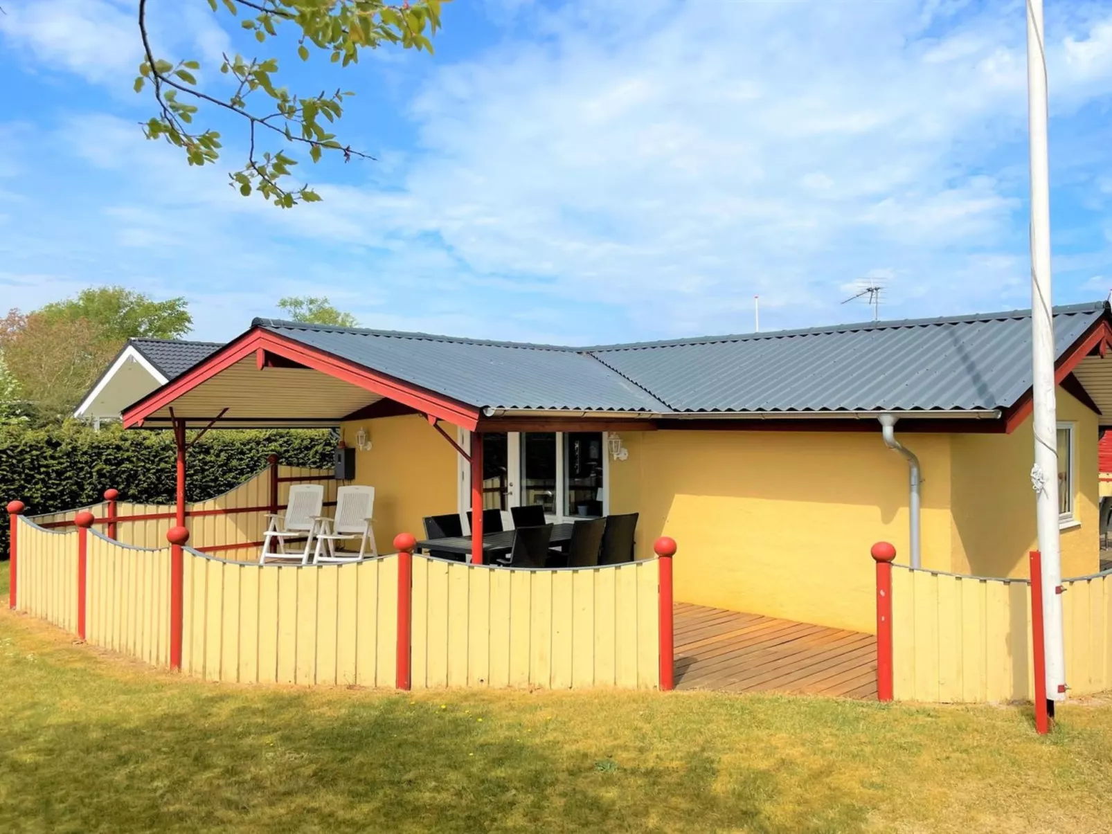 Eengezinswoning, bouwjaar 2004. 100 m van zee. Voor alleengebruik: wild terrein 550 m2. Barbecue, kinderspeelplaats. In het huis: wasmachine. Carport. Levensmiddelenwinkel 400 m. De eigenaar accepteert geen jeugdgroepen.