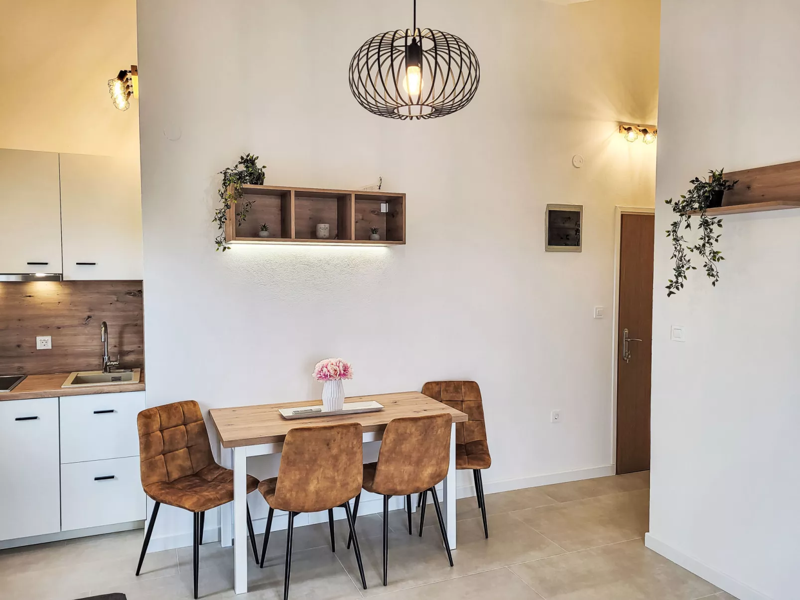 Appartement 2-kamers 35 m2 op de 1e verdieping, op het zuidwesten gelegen. Woon-/eetkamer met 1 2-pers divanbed (160 cm, lengte 200 cm), Sat-TV en air-conditioning. Uitgang naar het balkon. 1 kamer met 1 2-pers bed (2 x 80 cm, lengte 200 cm). Open keuken (2-pits kookplaat, waterkoker, magnetron). Douche/WC. Geen verwarmingsmogelijkheid. Balkon 3 m2. Balkonmeubilair. Uitzicht op het zwembad. Ter beschikking: Internet (Internet (WiFi), gratis).