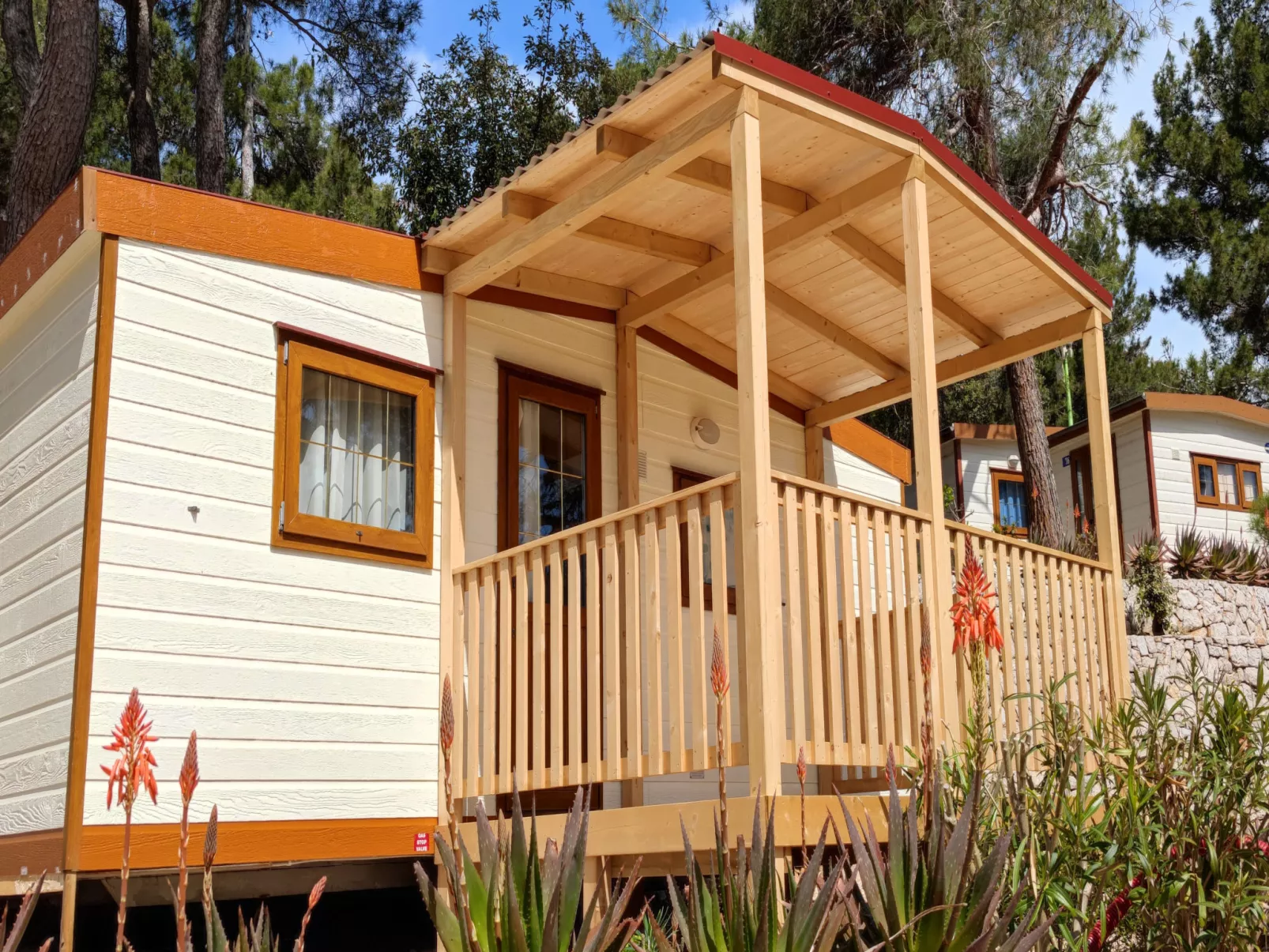 "Baia Comfort Plus", 3-kamers mobilhome 22 m2. Doelmatig ingericht: woon-/eetkamer met Sat-TV en air-conditioning. 1 kamer met 1 2-pers bed (140 cm), aparte WC. 1 kamer met 2 bedden (70 cm). Kookhoek (4 kookpitten (vlammen), diepvriezer). Douche/WC. Air-conditioning (extra). Terras 10 m2, overdekt. Terrasmeubelen. Ter beschikking: Internet (Internet (WiFi), extra). Parkeerplaats (1 Auto). Rookvrij huis. Maximaal 2 kleine huisdieren/honden toegestaan. De beschrijving betreft een voorbeeld van dit type woning in dit complex.