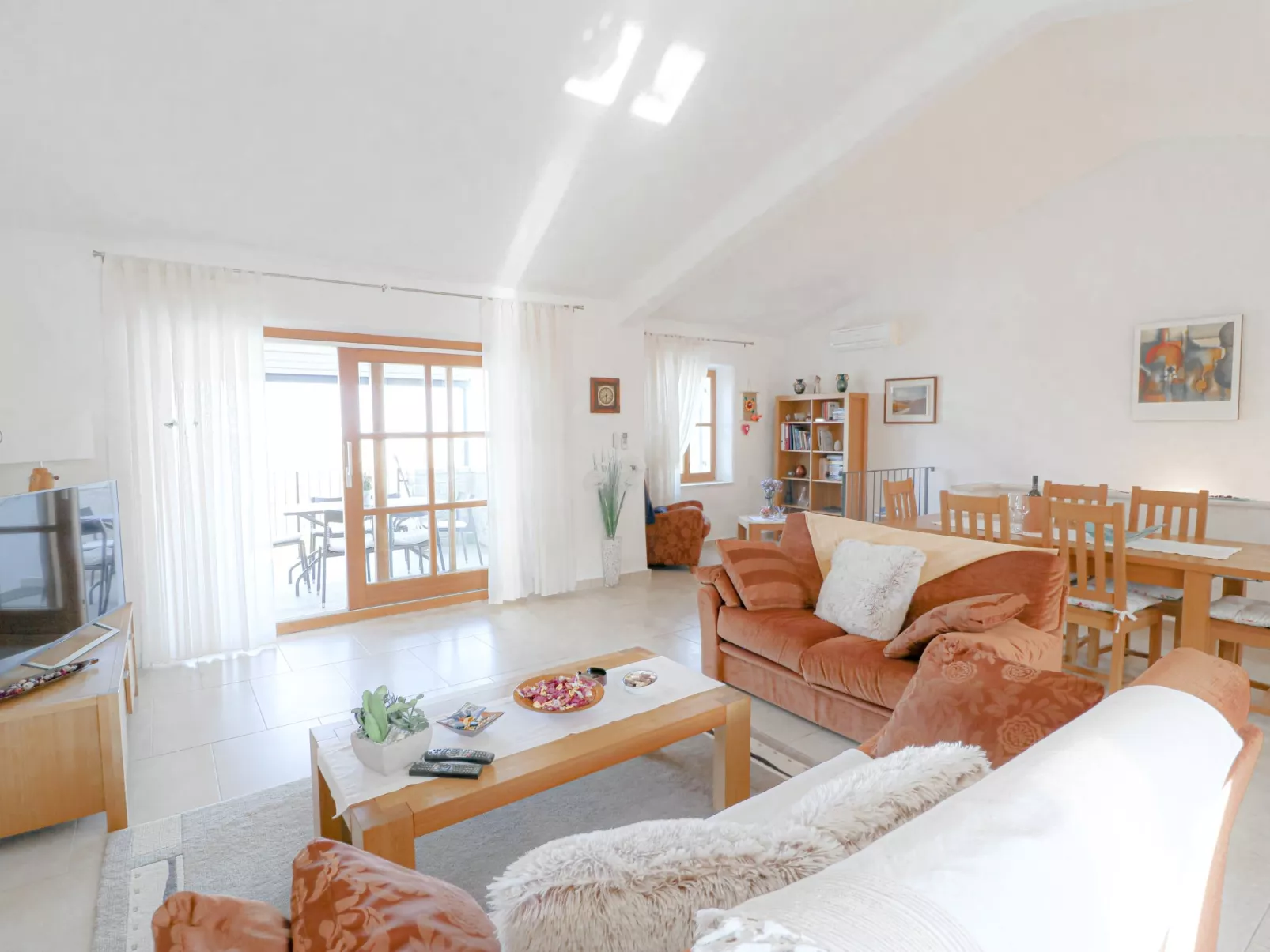 "Diana", huis in een rij 3-kamers 116 m2 op 2 verdiepingen. Smaakvol en gezellig ingericht: 1 kamer met 1 2-pers bed (160 cm, lengte 200 cm), Sat-TV (Flatscreen TV), air-conditioning. Uitgang naar het terras. 1 kamer met 2 bedden (80 cm, lengte 200 cm). Douche/WC, bad/douche/WC. Bovenverdieping: woon-/eetkamer 50 m2 met Sat-TV (Flatscreen TV), air-conditioning. Uitgang naar het terras. Open keuken (oven, afwasmachine, 4 keramische glas kookplaten, magnetron, diepvriezer). Aparte WC. Vloerverwarming. Terras 20 m2, terras 12 m2. Terrasmeubelen, ligstoelen. Uitzicht in de verte op zee. Ter beschikking: kluis. Internet (WiFi, gratis).