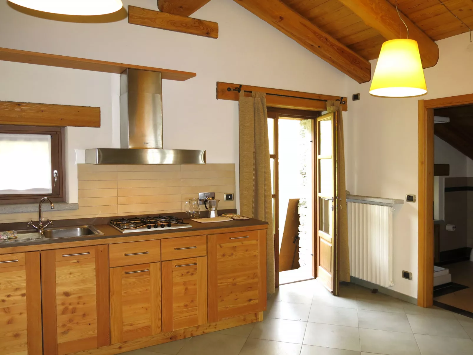 "Casot Brusa", chalet 4-kamers 90 m2 op 2 verdiepingen, op verhoogde begane grond. Smaakvol en met veel hout ingericht: 1 kamer met 1 bed en 1 2-pers bed. 2 kamers, elke kamer heeft 1 2-pers bed. Douche/bidet/WC. Bovenverdieping: open woon-/slaapkamer met 2 divanbedden, open haard, eettafel en Sat-TV. Uitgang naar de tuin. Kleine, open keuken (4 kookpitten (vlammen), magnetron). Douche/WC. Gas-verwarming (extra). Houten vloeren. Zithoek in de tuin. Terrasmeubelen, barbecue (verrijdbaar). Panoramazicht op de bergen en het dal. Ter beschikking: kinderstoel, kinderbed. IT004205B4MVQGWBZX