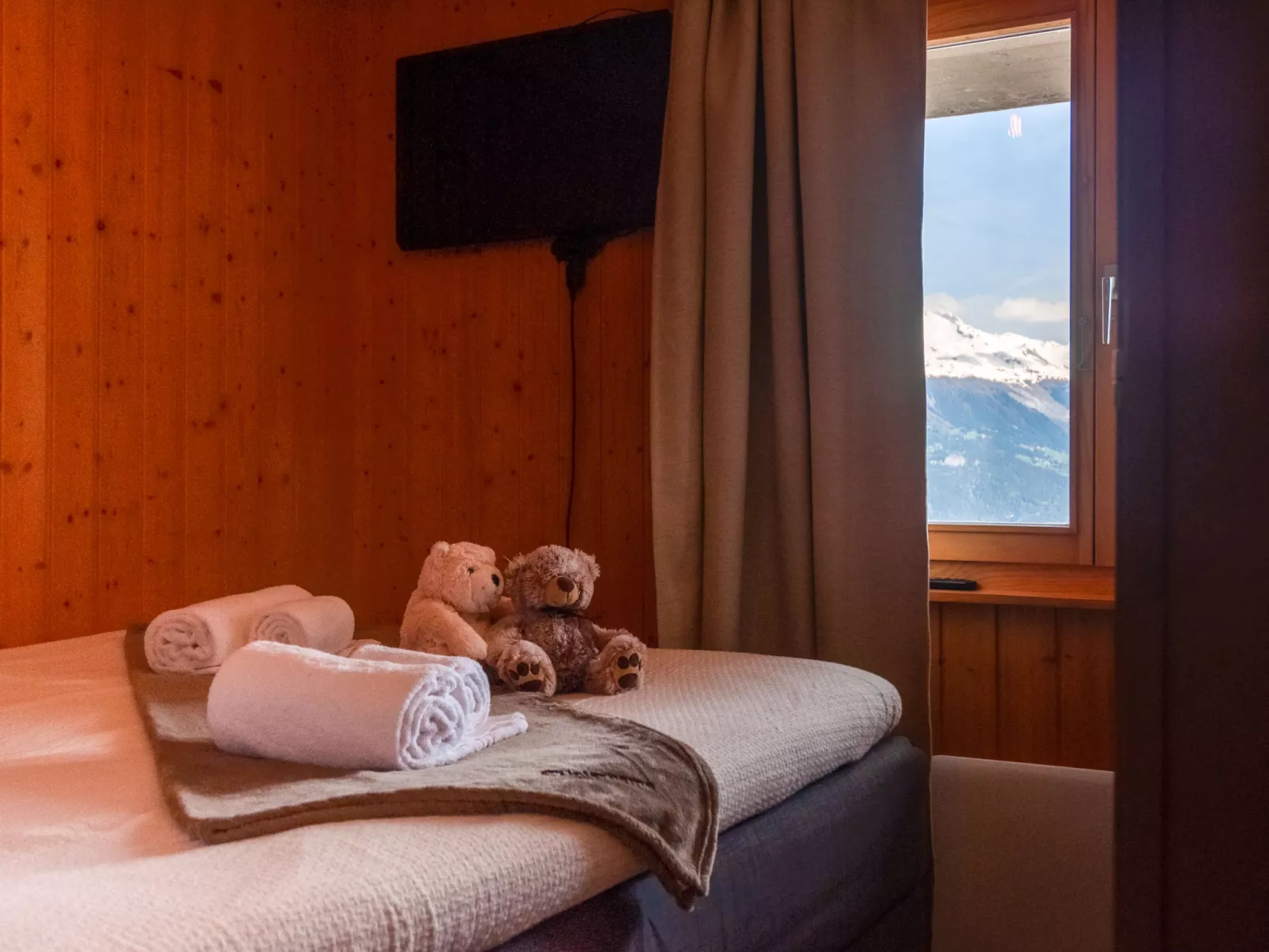 "Dolce Cabane", chalet 4-kamers 80 m2, op het noordwesten gelegen. Zeer comfortabel en romantisch ingericht: kleine hal. Woon-/eetkamer met zwedenkachel en Kabel-TV. Uitgang naar het terras, op het oosten. Open keuken (oven, afwasmachine, 4 keramische glas kookplaten, broodrooster, waterkoker, elektrische koffiemachine, pads voor de koffiemachine (nespresso) extra, fondue Set (kaas)). Douche/WC. Elektrische verwarming. Souterrain: 1 kamer met 1 2-pers bed (160 cm, lengte 200 cm). 1 kamer met 1 2-pers bed (140 cm, lengte 200 cm). 1 kamer met 1 2-pers bed (160 cm, lengte 200 cm). Douche/WC, Sauna. Balkon, op het westen gelegen, terras, op het noorden gelegen. Terrasmeubelen, barbecue, ligstoelen (2). Zeer mooi uitzicht op de bergen en het dal. Ter beschikking: wasmachine, droger, haardroger. Internet (Internet (WiFi), gratis). Parkeerplaats (3 Auto's). Oplaadstation. Niet rokers woning. 1 klein huisdier/hond toegestaan.