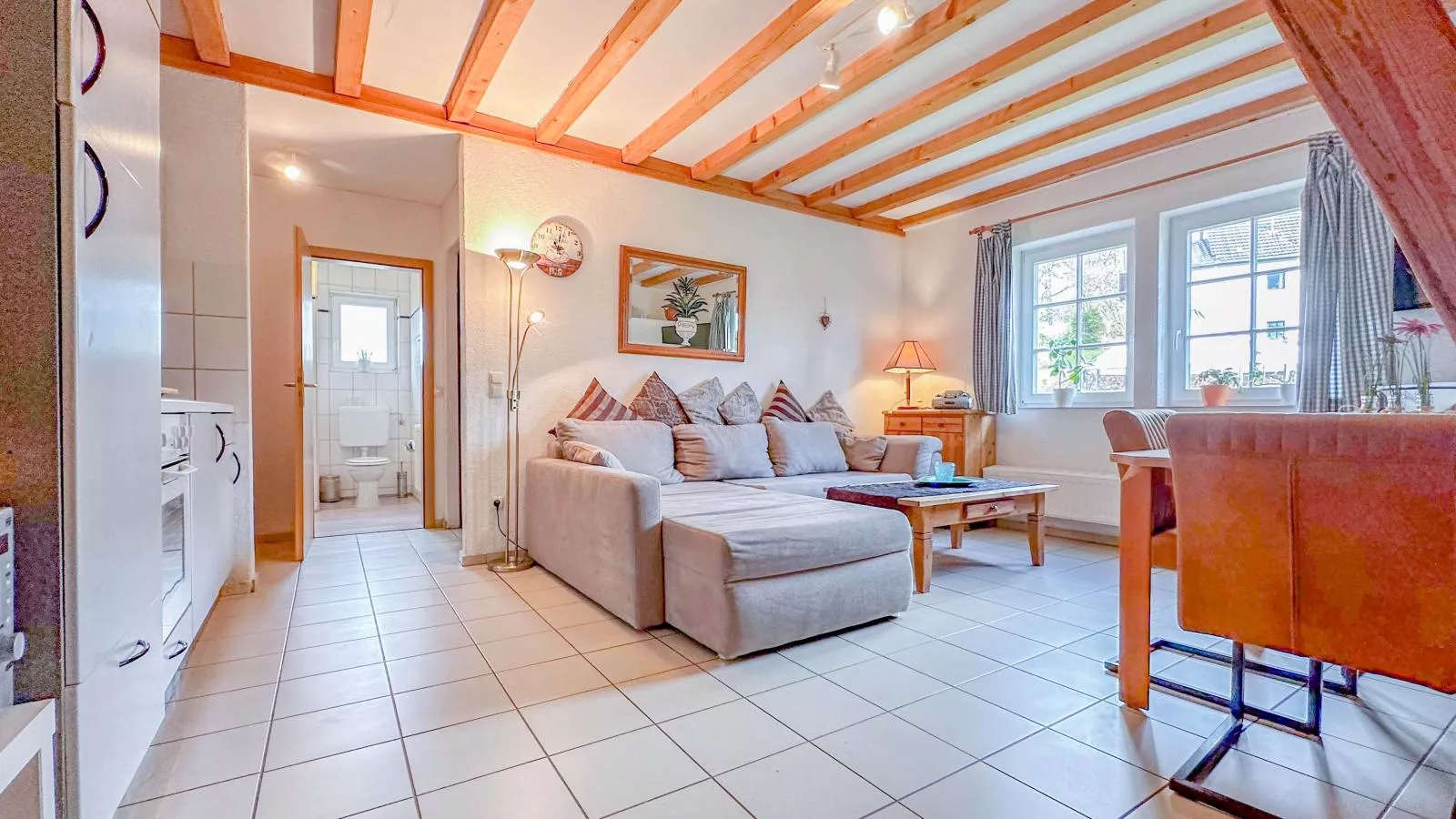 Centraal gelegen in de Eifel, vlakbij de bekende Vulkaanmeren. Deze regio is door de diverse meren en dichte bossen prachtig is om eindeloos te wandelen. In het midden van deze natuurpracht vind je een Bistro waarbij 4 appartementen zijn gelegen. Dit appartement op de eerste etage heeft een ruime woonkamer en luxe verstelbaar bed. Tegen lokaal tarief kun je een heerlijk ontbijten of dineren. Honden zijn er welkom. De binnenplaats van de oude hoeve is omgetoverd tot gezellige biertuin