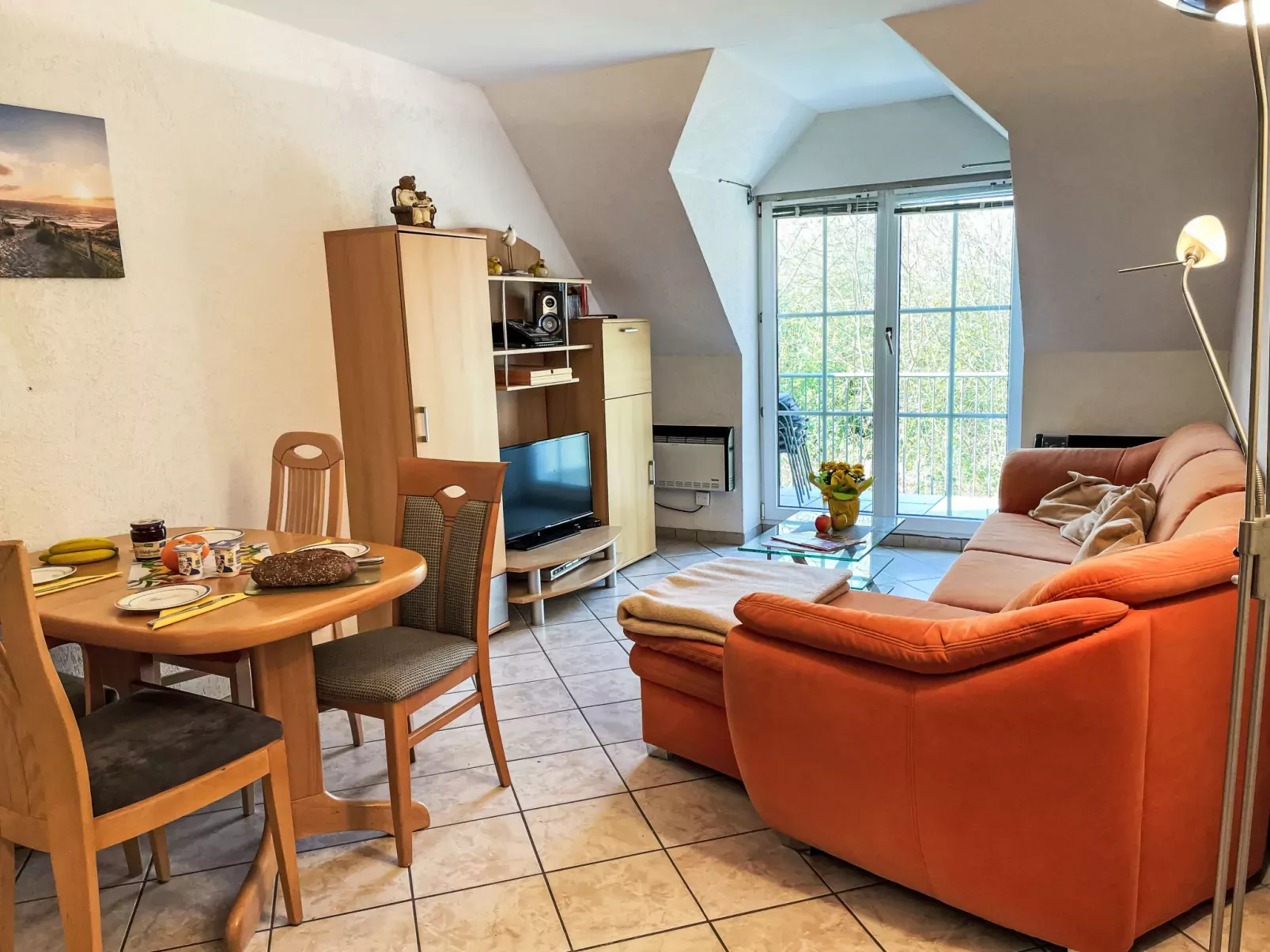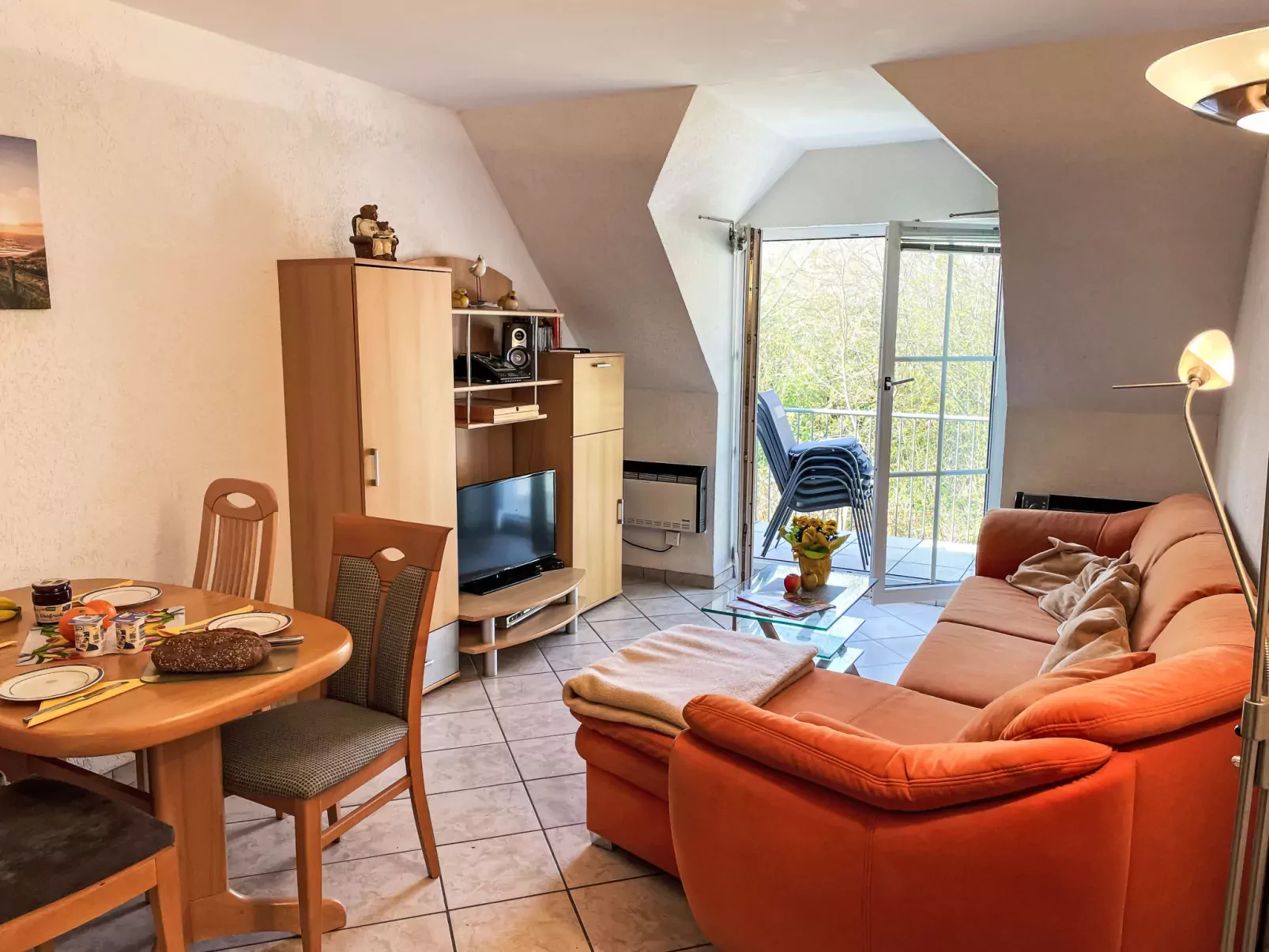 Appartement 3-kamers 46 m2 op de 1e verdieping. Gedeeltelijk afgeschuinde daken: woon-/eetkamer met Sat-TV (Flatscreen TV), CD-speler. Uitgang naar het balkon. 1 kamer met 1 2-pers bed (180 cm, lengte 200 cm). 1 kinderkamer met 1 bed (80 cm, lengte 200 cm), 1 slaapplaats (90 cm, lengte 200 cm). Kookhoek (oven, afwasmachine, 4 keramische glas kookplaten, broodrooster, waterkoker, elektrische koffiemachine). Douche/WC. Elektrische verwarming. Klein balkon 5 m2, op het zuiden gelegen. Balkonmeubilair. Ter beschikking: Internet (WiFi, gratis). Niet rokers woning. Maximaal 1 huisdier/hond toegestaan. Rookmelders.