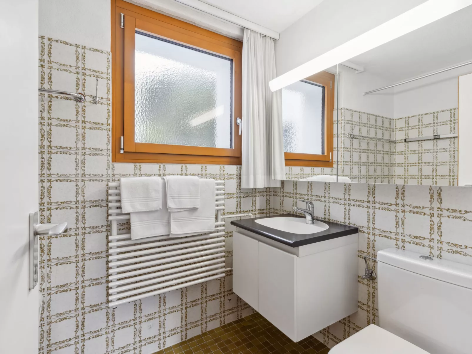 Davos: Flatgebouw "Guardaval (Utoring)". In de plaats, centrale, rustige, zonnige ligging tegen een helling, 1 km van het meer, 300 m van het skigebied. Voor medegebruik: overdekt zwembad. In het huis: receptie, salon met TV, Internet (WiFi), sauna (extra). Speelkamer, lift, berging voor ski's, centrale verwarming, wasmachine (voor medegebruik). Broodjesservice en drankjesservice. Smalle toegangsweg tot aan het huis. Overdekte parkeerplaats (beperkt aantal, extra), gemeenschappelijke garage (extra). Winkel 300 m, restaurant 300 m, bushalte, treinstation "Davos Dorf" 400 m, overdekt zwembad 1 km, meer (zwemmen) 1 km. Bergtrein, ski faciliteiten, skipisten, skischool, rodelbaan 1.5 km, langlaufloipe, ijsbaan 300 m. Bekende skigebieden kunnen gemakkelijk worden bereikt: Parsenn 300 m, Jakobshorn 1.5 km. Het appartementenhuis bevindt zich boven het dalstation van de Parsennbaan en beschikt over een schitterend uitzicht. Parkeerplaats (reserveren bij aankomst).