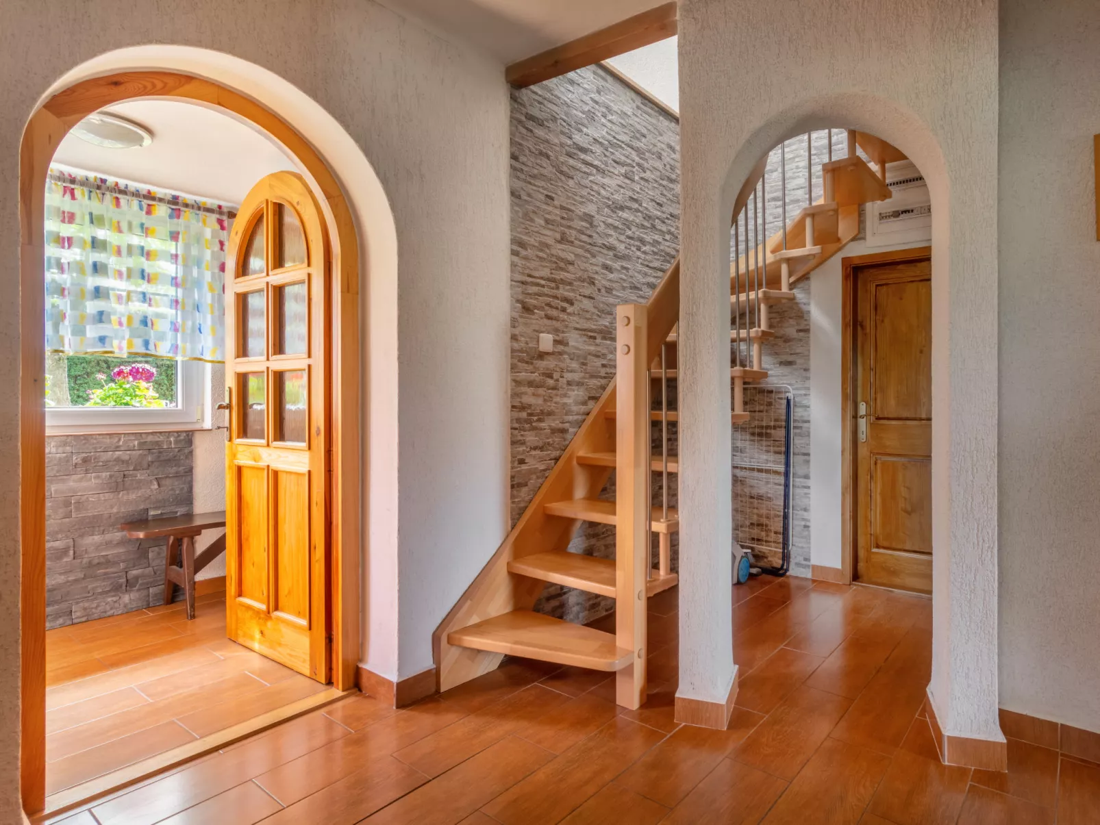 Huis 6-kamers 140 m2 op 2 verdiepingen. Rustiek en gezellig ingericht: woonkamer met Sat-TV (Flatscreen TV), radio en DVD. Biljardkamer met open haard en eettafel. 1 kamer met 1 2-pers bed. 1 kamer met 1 2-pers bed. Keuken (oven, afwasmachine, 4 keramische glas kookplaten, broodrooster, waterkoker, magnetron, elektrische koffiemachine) met eethoek. Douche, douche/bidet/WC, dubbele wastafels, Sauna. Elektrische verwarming. Bovenverdieping: 1 kamer met afgeschuinde daken met 1 2-pers bed. 1 kamer met afgeschuinde daken met 1 2-pers bed. Douche/WC. Elektrische verwarming. Zithoek in de tuin. Terrasmeubelen, barbecue. Panoramazicht. Ter beschikking: wasmachine, sauna, kinderstoel, kinderbed. Internet (WiFi, gratis). Niet rokers woning. Maximaal 3 huisdieren/honden toegestaan.