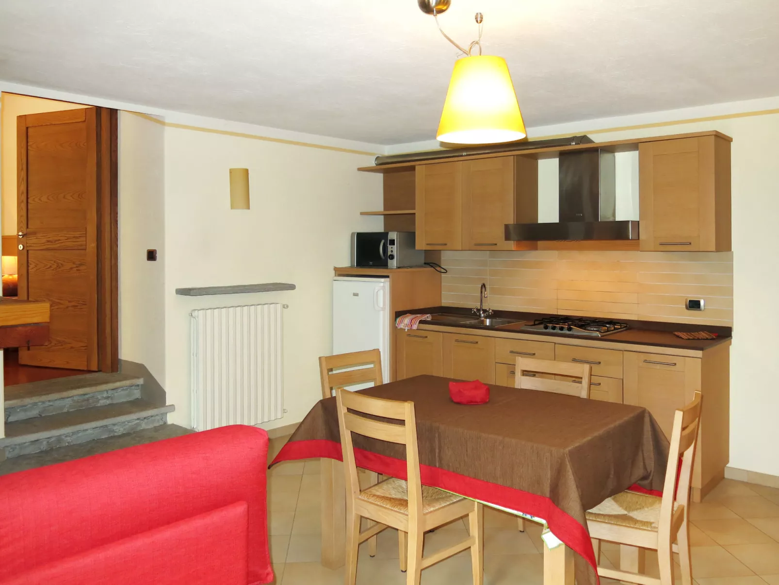 "La Borgata", appartement 2-kamers 63 m2 op 2 verdiepingen op de 2e verdieping. Smaakvol en gezellig ingericht: woon-/eetkamer met open haard, eettafel en TV. Uitgang naar het terras. 1 kamer met 1 2-pers bed. Open vide met 2 bedden. Kleine, open keuken (4 kookpitten (vlammen), magnetron). Douche/bidet/WC. Gas-verwarming. Parketvloeren. Terras. Terrasmeubelen. Panoramazicht. Ter beschikking: kinderstoel, kinderbed. Privé ingang. In plaats van een afgesloten slaapkamer bevinden sommige slaapgedeeltes zich in een open ruimte (galerij, nis, etc.). IT004205B4T8MGIVQM