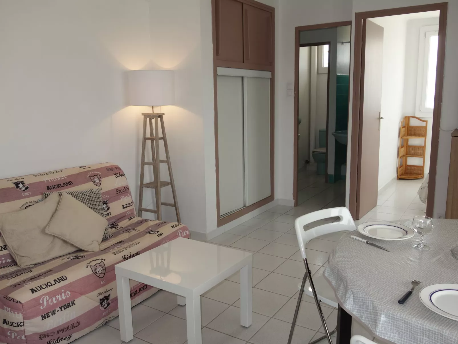 Appartement 2-kamers 30 m2 op de 2e verdieping. Licht, mooi ingericht: woon-/eetkamer met 1 2-pers divanbed (140 cm, lengte 190 cm), TV (Flatscreen TV). Uitgang naar het terras. 1 kamer met 1 2-pers bed (1 x 140 cm, lengte 190 cm). Kookhoek (4-pits kookplaat, broodrooster, waterkoker, magnetron, elektrische koffiemachine). Douche/WC. Elektrische verwarming. Terras 5 m2, overdekt, op het noordwesten gelegen. Terrasmeubelen. Zijdelings uitzicht op zee. Ter beschikking: Internet (Internet (WiFi), extra). Parkeerplaats nr. 10. TV alleen FR. Rookmelders. 83112 000202 TC