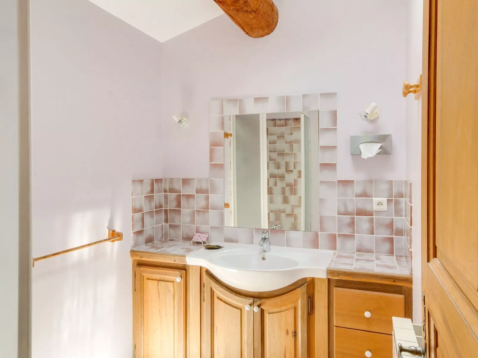 St Martin Castillon: Eengezinswoning "Les Cotes". Buiten de plaats, geïsoleerde ligging. Voor alleengebruik: terrein 7.200 m2, openluchtzwembad (5 x 10 m, 40 - 170 cm diepte, seizoensgebonden beschikbaarheid: 01.Jun. - 28.Sep.) met trap. WC bij het zwembad, barbecue, overdekte parkeerplaats op het terrein. Winkel 1 km, levensmiddelenwinkel 1.5 km, restaurant 1 km, bushalte "Centre" 1 km. Auto noodzakelijk. Verlicht zwembad dat door een stijf, elektrisch, plastic gordijn wordt beschermd. Aparte WC met kleine wastafel.