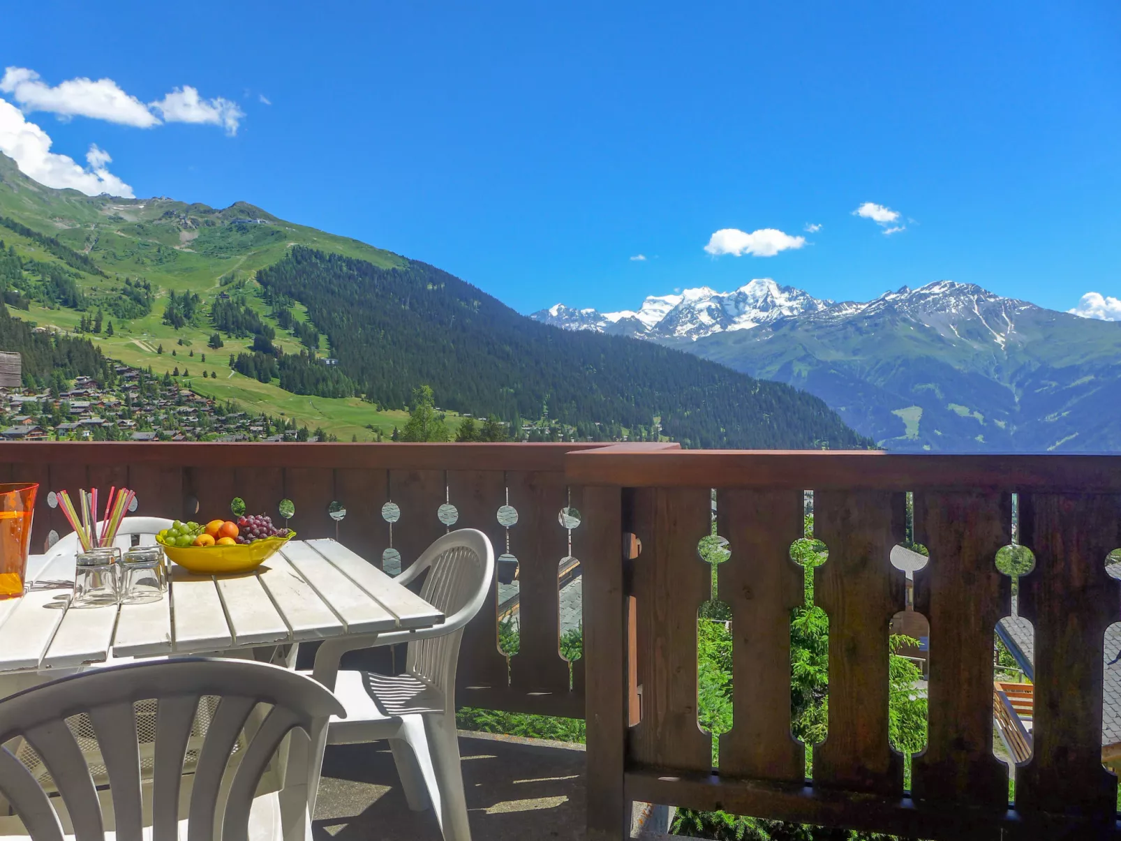 "Licorne 13", appartement 4-kamers 100 m2 op 2 verdiepingen op de 2e verdieping. Ruim en licht, comfortabel en mooi ingericht: groot woon-/eetkamer met open haard en elektrische verwarming. 1 kamer met 2 bedden (90 cm, lengte 200 cm). Open keuken (4-pits kookplaat, oven, afwasmachine, broodrooster, waterkoker, elektrische koffiemachine, pads voor de koffiemachine (Nespresso) extra, raclette oven, combimagnetron, fondue Set (kaas)) met bar. Douche/WC. Bovenverdieping: open galerij met afgeschuinde daken met Kabel-TV, radio en CD-speler. 1 kamer met 1 x 2 stapelbedden (90 cm, lengte 200 cm). 1 kamer met 1 2-pers bed (2 x 90 cm, lengte 200 cm). Badkamer. Groot balkon, op het zuiden gelegen. Terrasmeubelen. Panoramazicht. Ter beschikking: Internet (Internet (WiFi), gratis). Parkeerplaats nr. 13. Rookvrij huis.