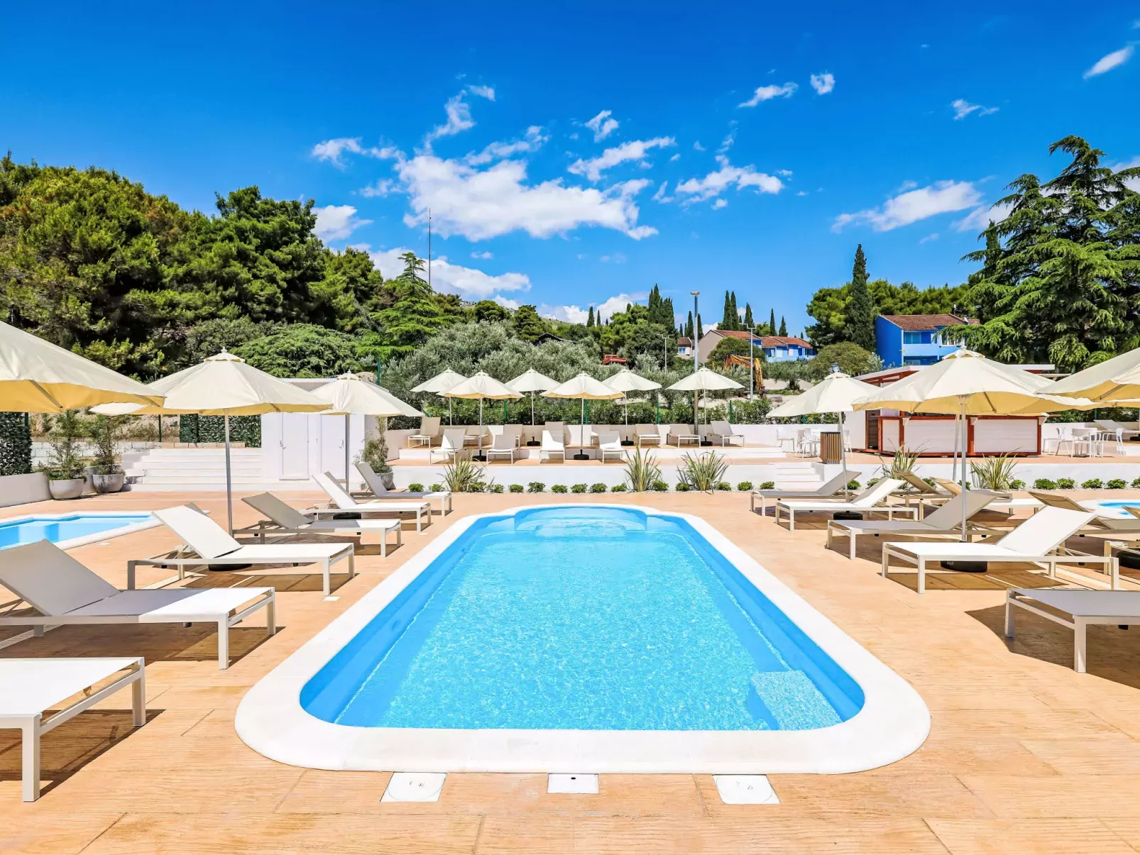 Vakantiecomplex "Medena". In de wijk Seget Donji, 3 km van het centrum van Trogir, 30 km van het centrum van Split, zonnige ligging, direct aan zee. Voor medegebruik: terrein met planten en bomen, 3 zwembaden (31 m2, 140 cm diepte, seizoensgebonden beschikbaarheid: 01.Apr. - 01.Nov.) met trap. Kinderzwembad, buitendouche, tennisbaan (extra), basketbal (extra), kinderspeelplaats. In het complex: receptie, restaurant, internetaansluiting, wasserette. Beschikbaar: fietsen (extra). Ontbijt volpension half pension op verzoek op aanvraag (extra). Luchthaventransfer (extra). Parkeerplaats (extra) op het terrein. Bushalte 650 m. Het objekt is geschikt voor 4 volwassenen + 1 kinderen. Vliegveld 8 km van het huis. De afgebeelde foto is slechts een voorbeeld. 1 slaapbank in de woon-/eetkamer is alleen voor 1 kind tot 12 jaar.