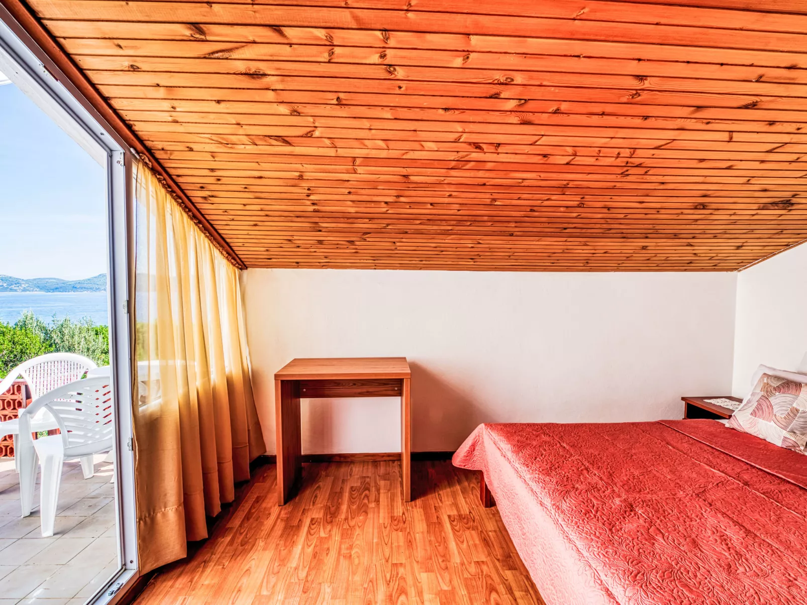 Huis 6-kamers 140 m2 op 2 verdiepingen, op het noordoosten gelegen. Woon-/eetkamer 50 m2 met Sat-TV (Flatscreen TV), air-conditioning. Uitgang naar het terras. 1 kamer met 1 2-pers bed (180 cm, lengte 200 cm). 1 kamer met 1 2-pers bed (160 cm, lengte 200 cm). Open keuken (4-pits kookplaat, oven, diepvriezer, elektrische koffiemachine). Douche/WC. Bovenverdieping: 1 kamer met afgeschuinde daken, hoogte van het plafond 160 - 220 cm met 1 2-pers bed (180 cm, lengte 200 cm). Uitgang naar het terras. 1 kamer met afgeschuinde daken, hoogte van het plafond 100 - 220 cm met 1 2-pers bed (160 cm, lengte 200 cm). Uitgang naar het terras. Eetkamer 15 m2 met air-conditioning. Uitgang naar het terras. Open keuken (4-pits kookplaat, oven, diepvriezer, elektrische koffiemachine). Douche/WC. Terras 30 m2 gedeeltelijk overdekt, 2 terrassen 4 m2. Terrasmeubelen. Uitzicht op zee. Ter beschikking: Internet (Internet (WiFi), gratis). Maximum bezetting: 6 volwassenen, 2 kind tot 12 jaar.