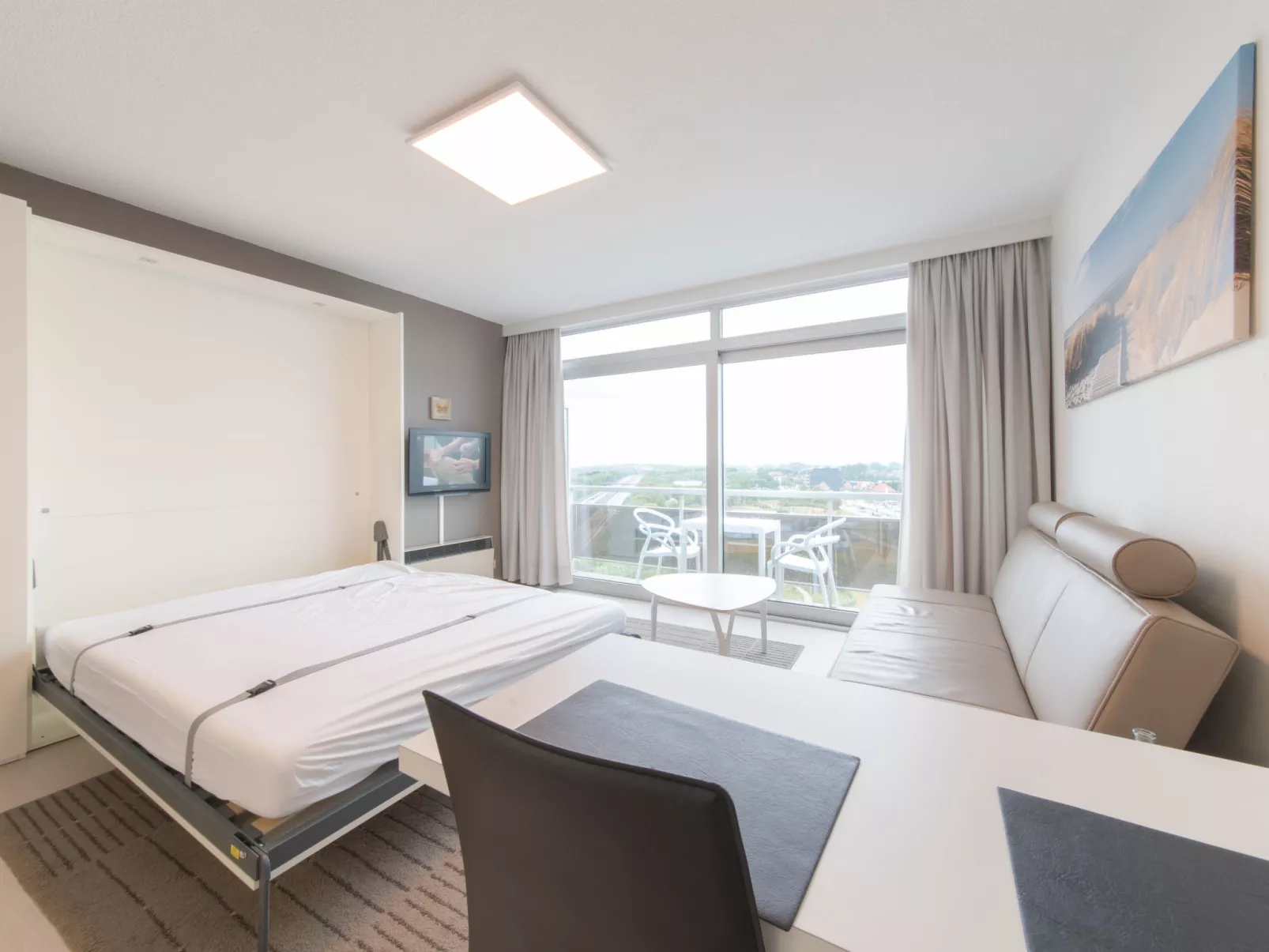 "Studio Zeezicht", studio 1-kamer 25 m2 op de 9e verdieping. Licht, gerenoveerd in 2025, doelmatig en modern ingericht: woon-/slaapkamer met 1 kastbed (160 cm, lengte 200 cm), eettafel, TV, internationale TV-zenders en air-conditioning. Uitgang naar het balkon. Kookhoek (afwasmachine, 4 keramische glas kookplaten, broodrooster, waterkoker, elektrische koffiemachine, combimagnetron). Douche/WC. Verwarming. Balkon 3 m2, op het noordoosten gelegen. Balkonmeubilair. Panoramazicht op zee, het landschap en de plaats. Ter beschikking: haardroger. Internet (WiFi, gratis). Rookvrij huis, geen parkeerplaats. Maximaal 1 huisdier/hond toegestaan. Rookmelders, brandblusser. LD386429