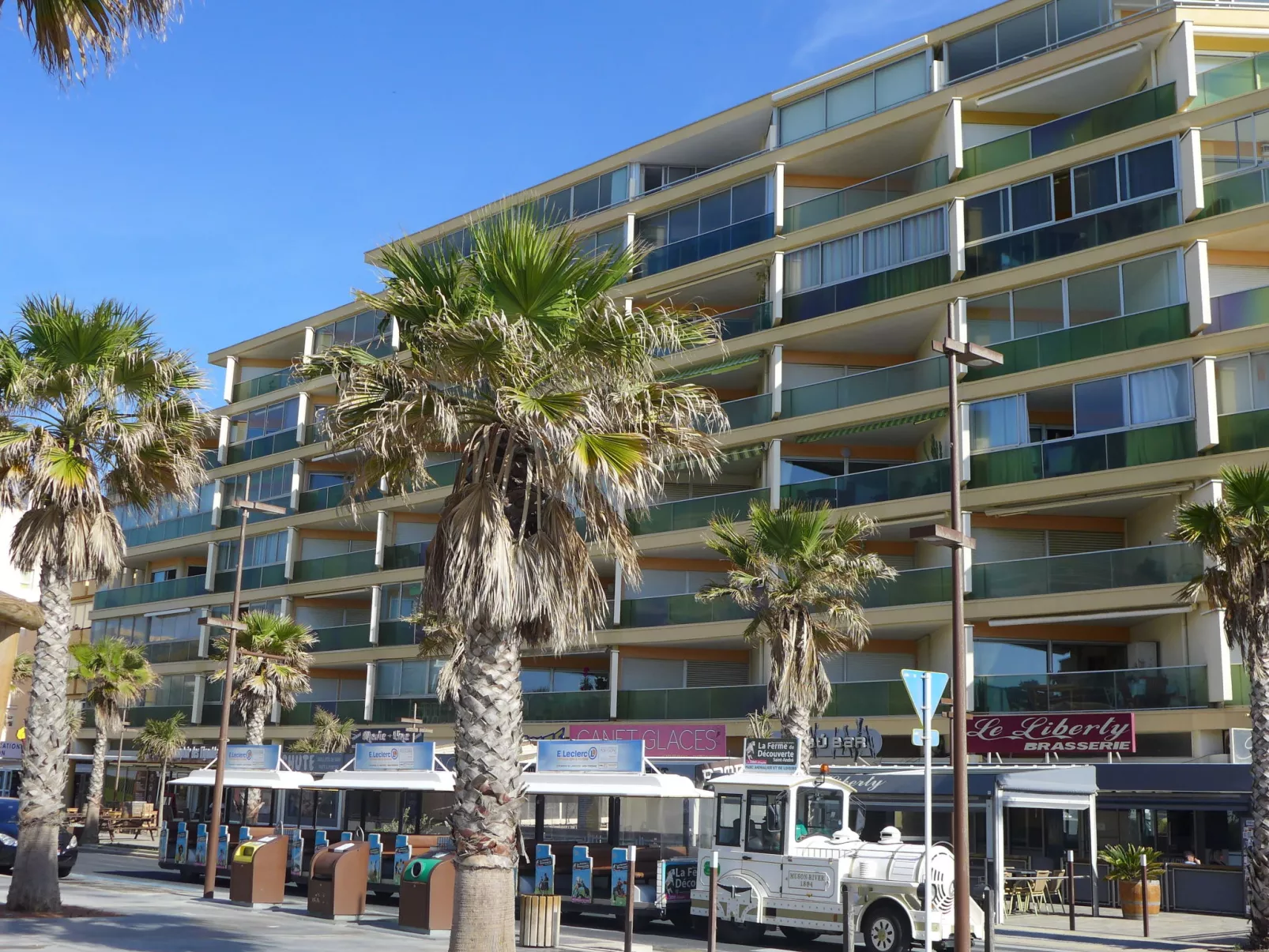 Appartement 3-kamers 53 m2 op de 4e verdieping. Eenvoudig ingericht: woon-/eetkamer met TV (Flatscreen TV), air-conditioning. Uitgang naar het terras. 1 kamer met 1 2-pers bed (1 x 140 cm, lengte 190 cm), ventilator. 1 kamer met 1 2-pers divanbed (1 x 140 cm, lengte 190 cm). Open keuken (oven, afwasmachine, 4 keramische glas kookplaten, broodrooster, magnetron, elektrische koffiemachine, pads voor de koffiemachine (Nespresso)). Douche, aparte WC. Heteluchtverwarming. Klein terras 10 m2. Terrasmeubelen. Mooi uitzicht op zee. Ter beschikking: wasmachine. Internet (Internet (WiFi), extra). Parkeerplaats nr. 435. Rookmelders.