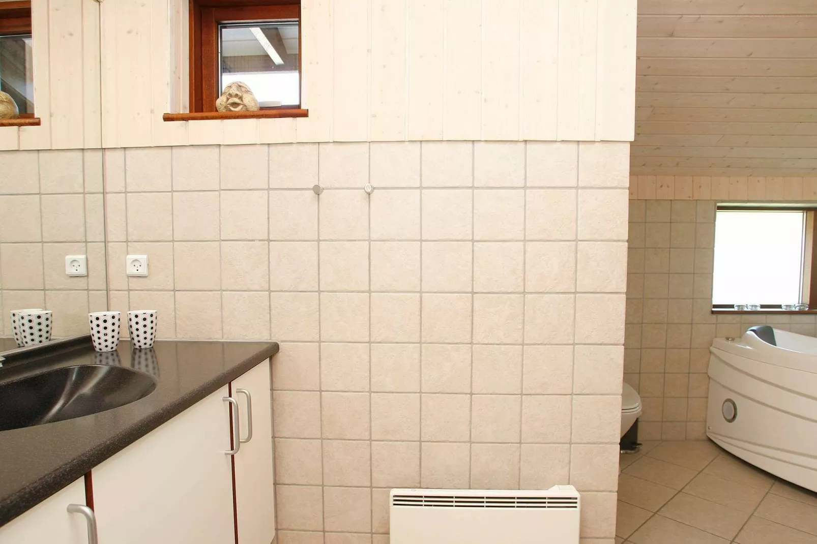 Dieses gepflegte Ferienhaus am Thorup Strand bietet eine helle und moderne Einrichtung und ist ideal für einen erholsamen Urlaub. Das geräumige Wohnzimmer verfügt über einen Fernseher mit dänischen und deutschen Sendern, einen DVD-Player und eine Stereoanlage mit CD-Player – ideal für Unterhaltung für Jung und Alt. Das Ferienhaus bietet zwei Badezimmer mit Fußbodenheizung, eines davon mit Whirlpool und Sauna für ultimative Entspannung nach einem Tag am Strand oder einer Erkundungstour durch die Umgebung. Die voll ausgestattete Küche verfügt über Cerankochfelder, einen separaten Backofen mit Grill, eine Mikrowelle, eine Kühl-Gefrierkombination, eine Waschmaschine und eine Dunstabzugshaube für eine bequeme Zubereitung von Mahlzeiten. Die Beheizung erfolgt über eine Kombination aus Wärmepumpe, Holzofen und Elektroheizung und sorgt so ganzjährig für eine gemütliche Atmosphäre. Die Terrasse bietet sonnige und windgeschützte Plätze zum Genießen und Entspannen in Ruhe. Ein Gasgrill sorgt für die Zubereitung köstlicher Mahlzeiten im Freien. Dieses Ferienhaus in ruhiger Küstennähe ist ideal für Familien oder Gruppen, die Komfort, moderne Annehmlichkeiten und einen ruhigen Rückzugsort am Meer suchen. Mit seiner Kombination aus luxuriösem Innenbereich und Freizeitbereichen im Freien verspricht es einen unvergesslichen Aufenthalt am Thorup Strand.