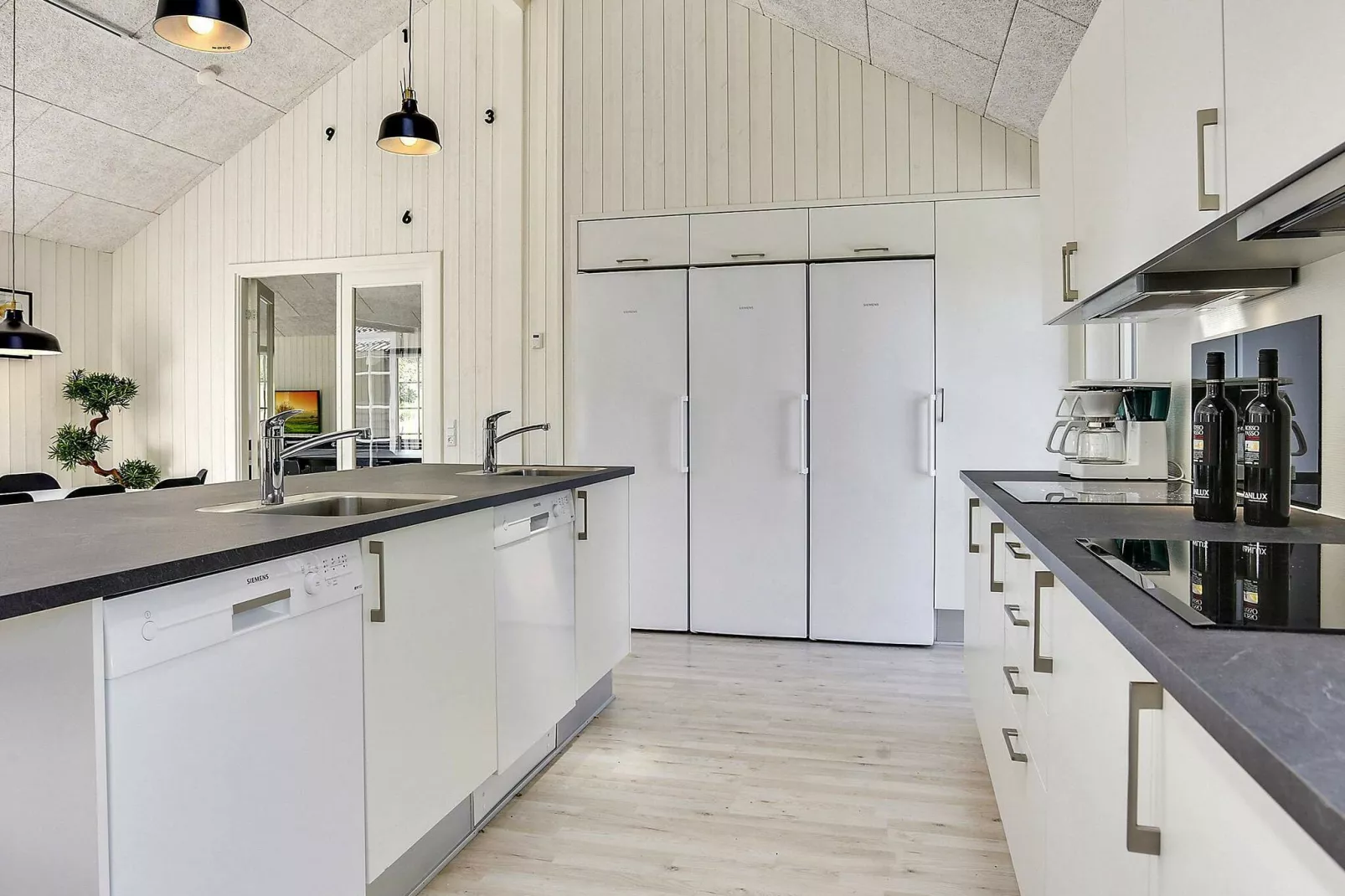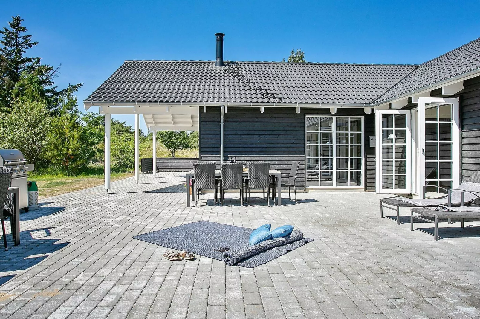 Großes, ansprechend eingerichtetes Ferienhaus in Blåvand gelegen und mit Pool- und Aktivitätsbereich eingerichtet. Im Poolraum erwartet Sie ein 20 m² großer Swimmingpool mit Gegenstromanlage sowie Wasserrutsche für Kinder, ein eingebauter Whirlool und eine Sauna. Im Aktivitätsraum können Sie sich bei einer Partie Billard, Kicker, Tischtennis oder elektronischem Dart herausfordern. Es gibt mehrere Fernseher im Haus sowie PlayStation4 und Blu-ray-Player. Die Einrichtung ist modern und die Raumaufteilung gut durchdacht. So gibt es z.B. drei Schlafbereiche mit je drei Schlafzimmern und einem Bad. Das vierte Bad befindet sich im Poolbereich. Die Schlafplätze auf den Hemsen sind besonders bei größeren Kindern beliebt. Vom großen Küchen-Ess-Wohnbereich, mit Kochinsel und umfassender Ausstattung, geht es direkt hinaus auf die Terrasse, auf der Sie es sich in den Gartenmöbeln vor dem Kamin bequem machen können. Für Kinder sind Spielturm, Sandkasten und ein Trampolin (Nutzung auf eigene Gefahr) vorhanden. Keine Vermietung an Jugendgruppen.