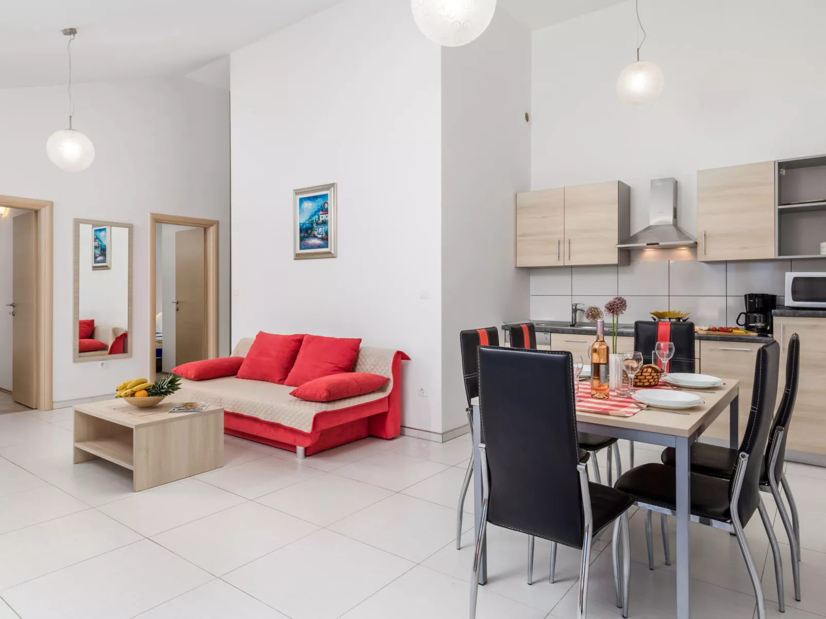 Mooi appartementencomplex "Tea". 300 m van het centrum van Šilo, zonnige ligging, 200 m van zee, 200 m van het strand, aan een doodlopende weg, te midden van groen. Voor medegebruik: openluchtzwembad hoekig (24 m2, 120 - 175 cm diepte, seizoensgebonden beschikbaarheid: 13.Mei. - 23.Sep.) met trap. Kinderzwembad, barbecue, parkeerplaats bij het huis op het terrein. Winkel 350 m, restaurant 220 m, bushalte 600 m, zandstrand, strandbad 200 m. De afgebeelde foto is slechts een voorbeeld.