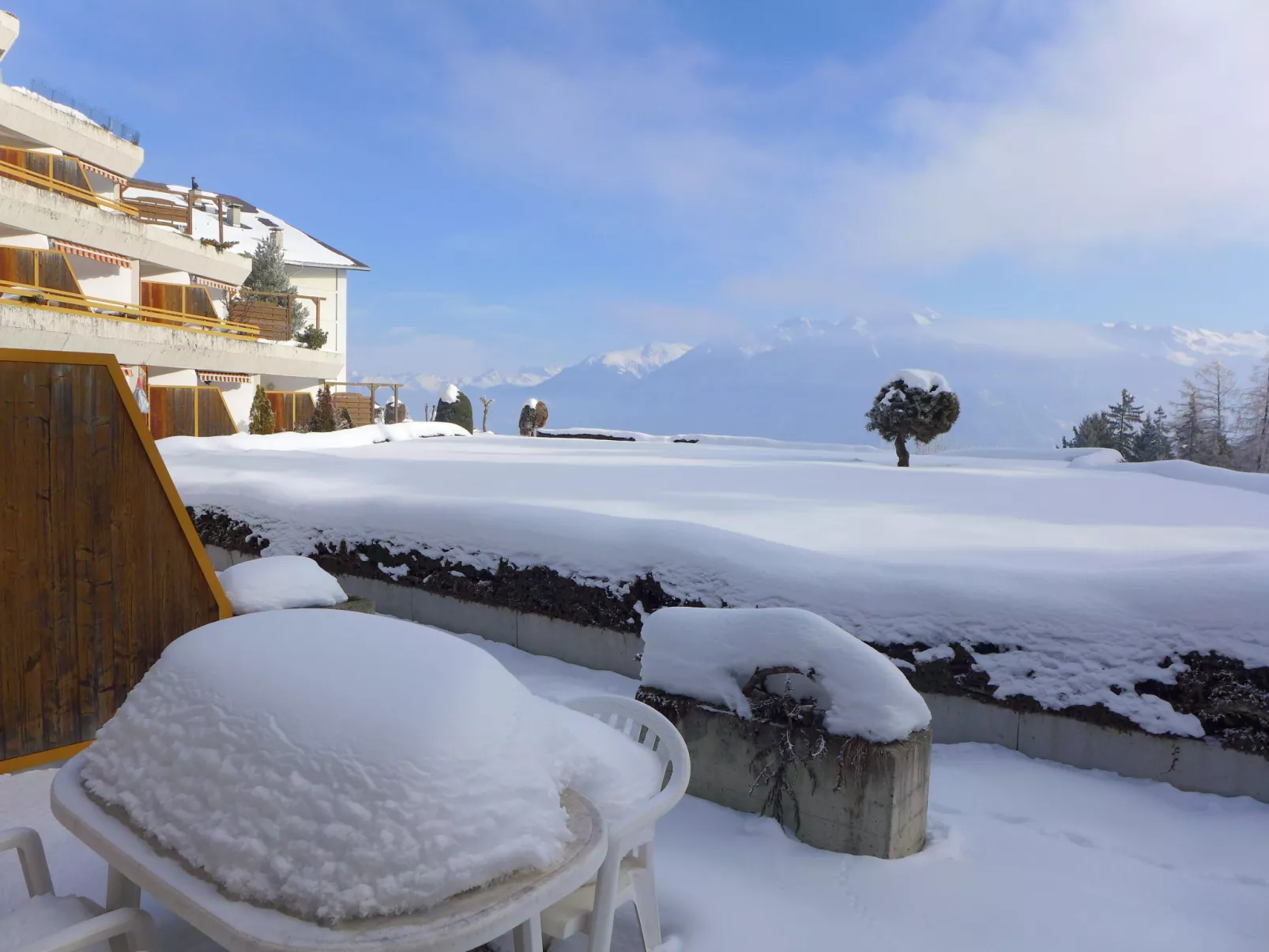 "Terrasse Des Alpes 615", studio 1-kamer 53 m2 op de 1e verdieping. Het objekt is geschikt voor 2 volwassenen + 1 kinderen. Woon-/eetkamer met schuifdeur met 1 divanbed (120 cm, lengte 180 cm), Kabel-TV. Slaapnis met schuifdeur met 1 2-pers bed (2 x 90 cm, lengte 190 cm). Open keuken (oven, afwasmachine, 3 keramische glas kookplaten, broodrooster, waterkoker, magnetron, elektrische koffiemachine, fondue Set (kaas)). Bad/WC, aparte WC. Terras 17 m2, op het zuiden gelegen. Terrasmeubelen. Mooi uitzicht op de bergen. Ter beschikking: strijkijzer, haardroger. Internet (WiFi, gratis). Garage nr. 7 (2 Auto's), hoogte 200 cm, breedte 230 cm. Niet rokers woning. Maximaal 1 huisdier/hond toegestaan.