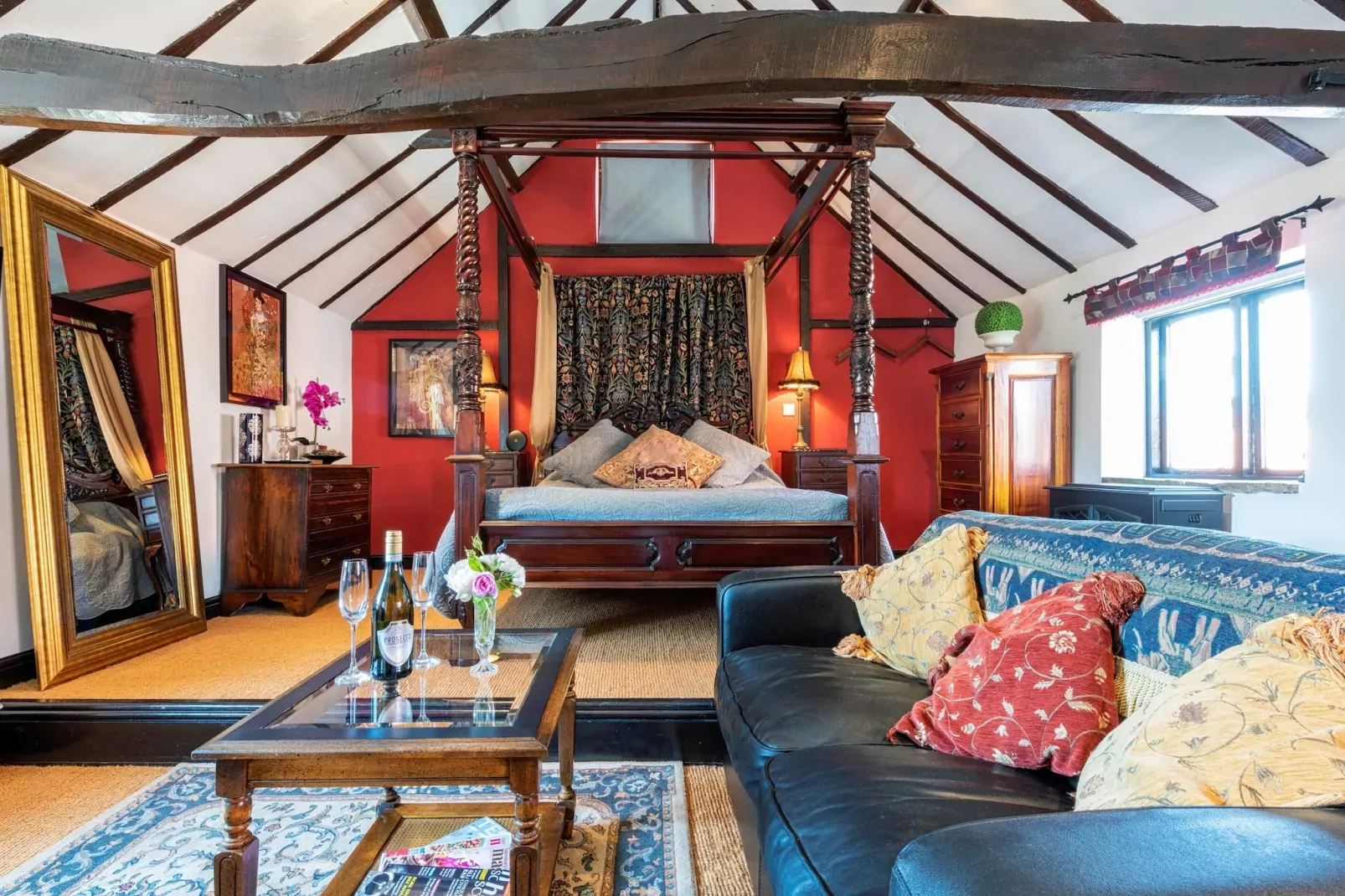 Bij aankomst wordt u begroet door de eeuwenoude buitenkant met een gedeeld terras versierd met levendige bloemen: een perfecte plek om te genieten van de zon. De moderne schuurdeur opent en onthult stenen treden, verlicht door een delicate kroonluchter, die u naar de uitnodigende ingang van uw uitje leiden. Binnen vindt u een goed uitgeruste keuken, klaar voor romantische diners of een ontspannen ontbijt, aangevuld met zichtbare eiken balken en een lichte inrichting die warmte en charme uitstraalt. Ontspan in de gezellige zithoek met smart televisie, waar elk detail subtiele elegantie uitstraalt.