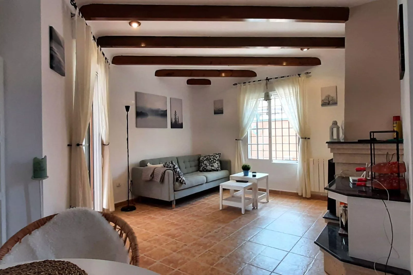 Binnen verwelkomt de villa u met een ruime woon- en eetkamer. Na een dag verkennen kunt u ontspannen in de gezellige zithoek met een flatscreen-tv en airconditioning, of de openslaande deuren naar de gemeubileerde tuin openen voor een avondje buiten. De volledig uitgeruste keuken biedt alles wat u nodig heeft om maaltijden te bereiden en de slaapkamers met airconditioning zorgen voor rustgevende nachten in de zomermaanden.